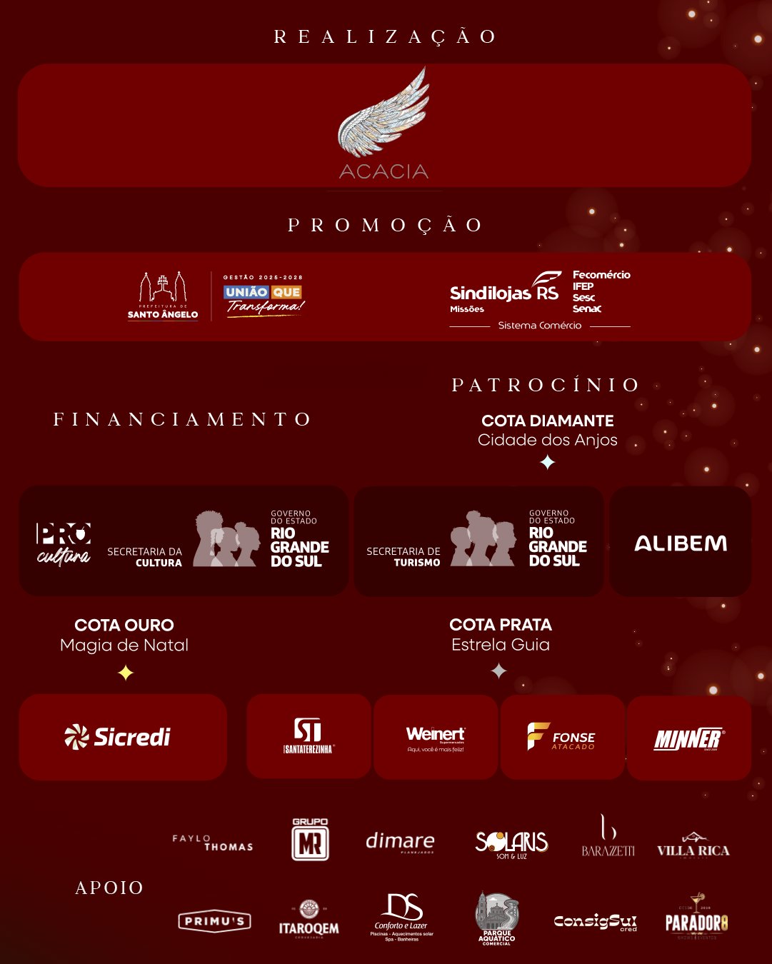 PROMOÇÃO: Prefeitura de Santo Ângelo, através das Secretarias Municipais de Desenvolvimento Econômico, Turismo e Inovação, Meio Ambiente e Desenvolvimento Urbano, Cultura e Esporte, Educação, e Desenvolvimento Social e Cidadania; e Sindilojas Missões