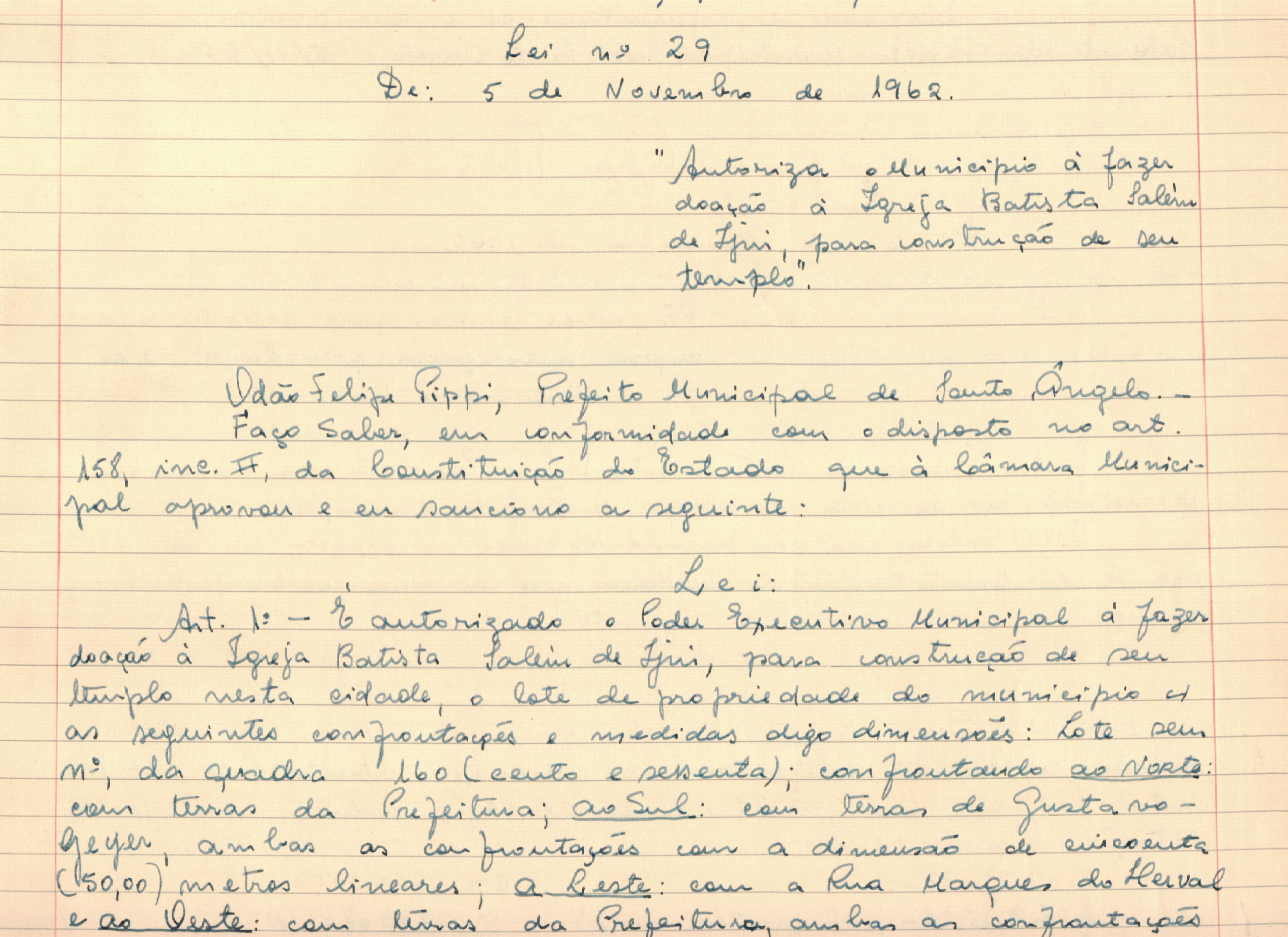 •    Lei n 29-1962 - Aut Mun doar a Igreja Batista Salem de Ijui-01 (JPG) • Enviado em: 01/01/0001 00:00:00