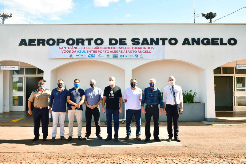 Uma cerimônia realizada pelo Governo Municipal na tarde desta segunda-feira, 01, e o pouso de uma aeronave ATR 72-600 na pista do Aeroporto Regional Sepé Tiaraju marcaram a retomada e ampliação dos dias de voos de Santo Ângelo a Porto Alegre pela Azul Linhas Aéreas. Os voos estavam suspensos desde março do ano passado por causa da pandemia e tiveram reinício neste dia 1º, com cinco opções semanais ligando o Noroeste à capital do Estado.