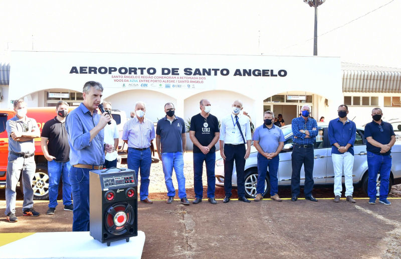 O ato que marcou a retomada dos voos foi comemorado pelo prefeito em Exercício, Volnei Teixeira e pelo deputado estadual Eduardo Loureiro, ao lembrarem o histórico de negociações para que Santo Ângelo tivesse os voos comerciais no Aeroporto Regional Sepé Tiaraju, articulado com todos os setores.