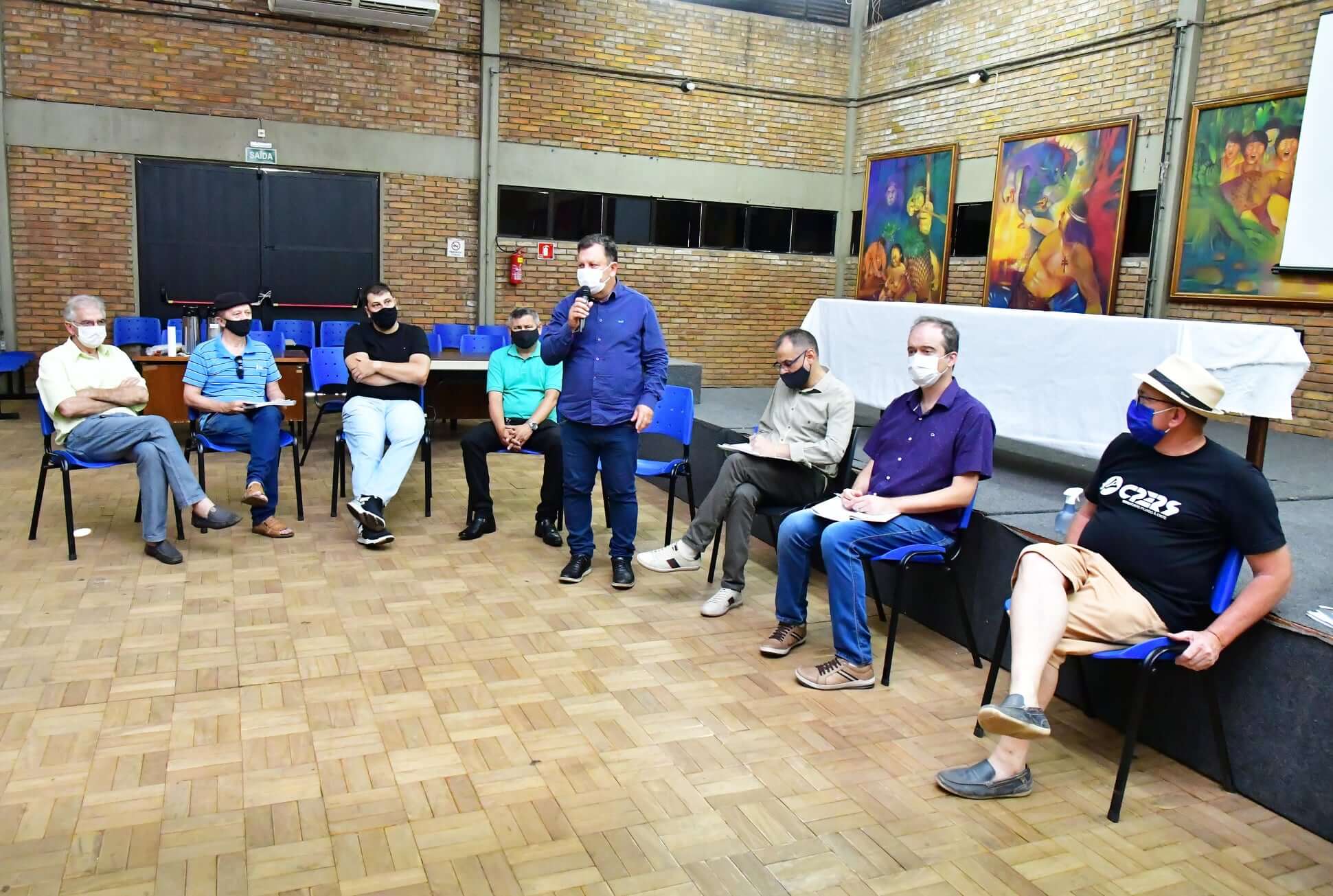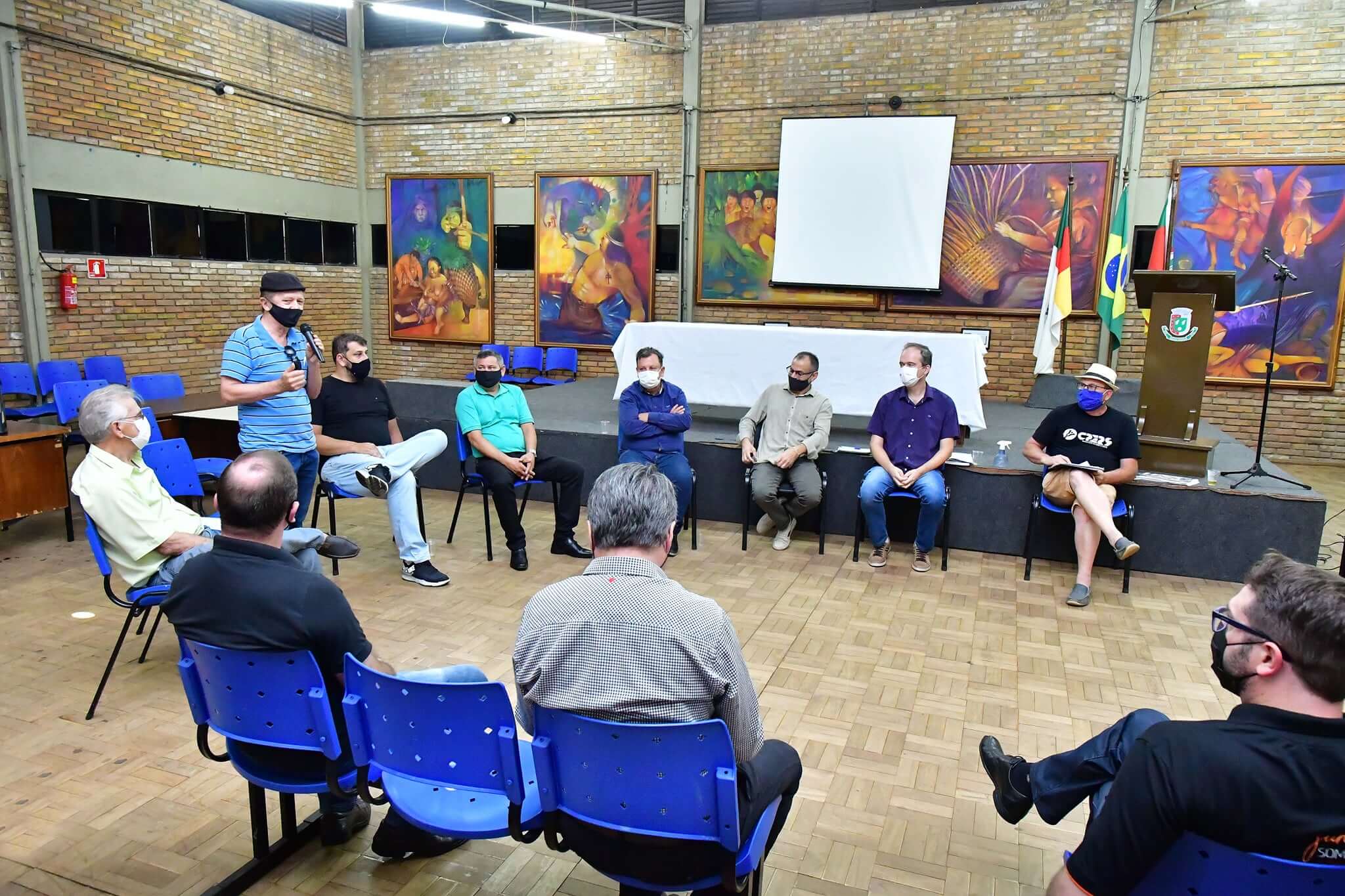 A proposição do vereador Gilberto Corazza, reuniu no auditório do Centro Municipal de Cultura integrantes do Executivo, Legislativo, entidades do setor primário, Emater e instituições financeiras de crédito agrícola, para tratar do enfrentamento a estiagem e de projetos e programas a curto, médio e longo prazo.