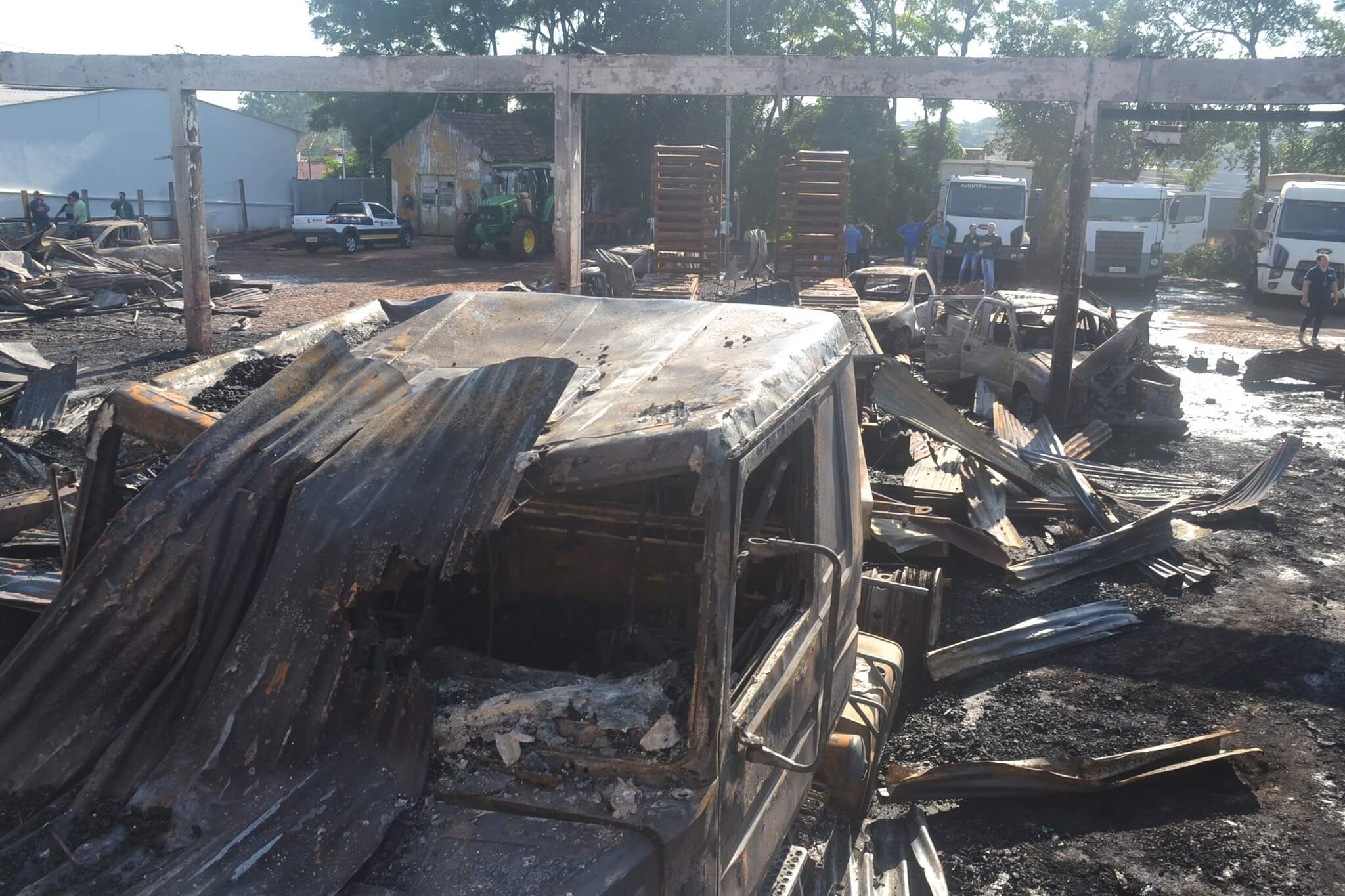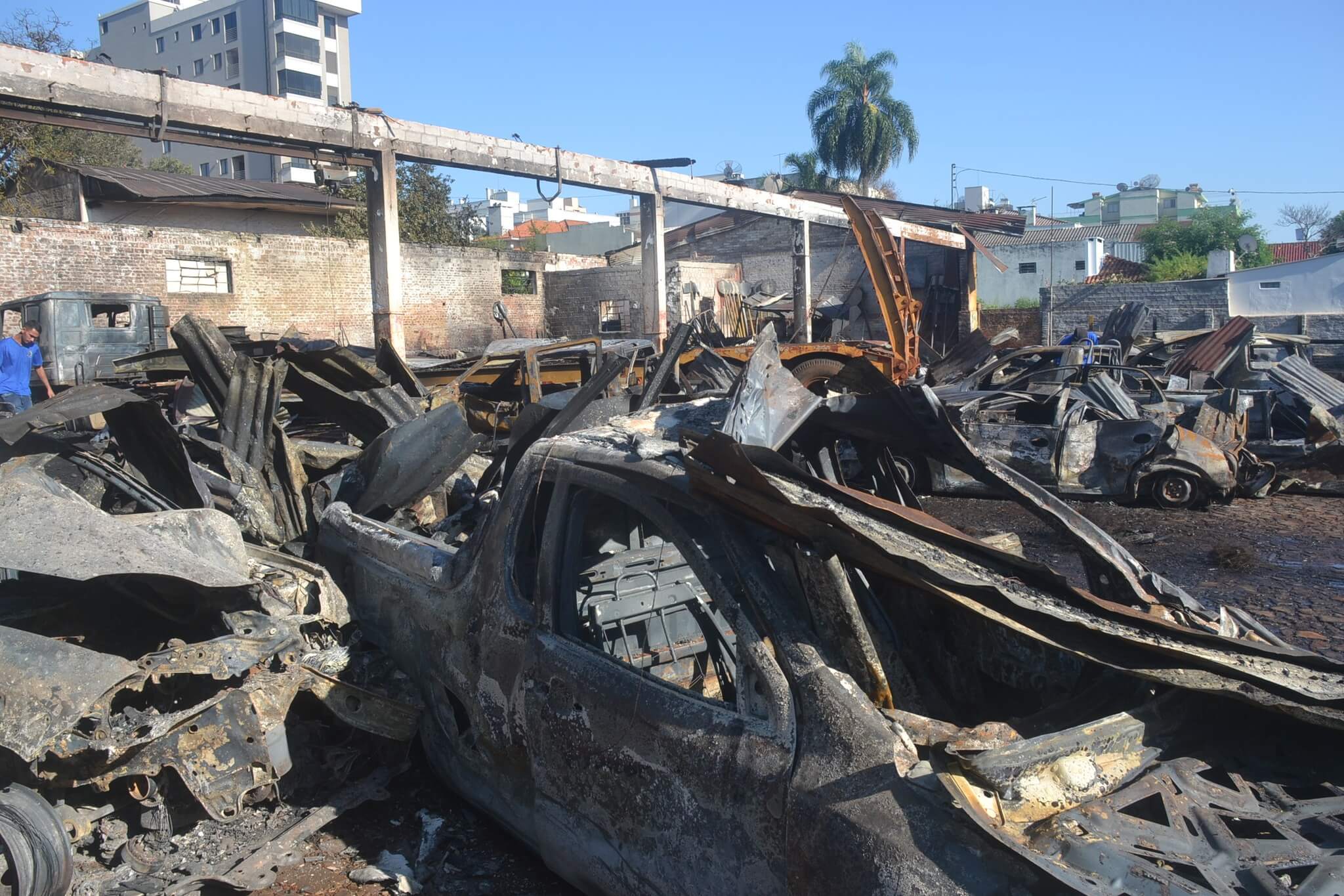 O levantamento pericial foi concluído pelos técnicos do Instituto Geral de Perícias (IGP) na garagem da Secretaria Municipal de Desenvolvimento Rural (SDR) na manhã desta quarta-feira, 7. Na noite anterior o local foi atingido por um incêndio que destruiu 12 automóveis e mais um caminhão prancha, além da estrutura da garagem.