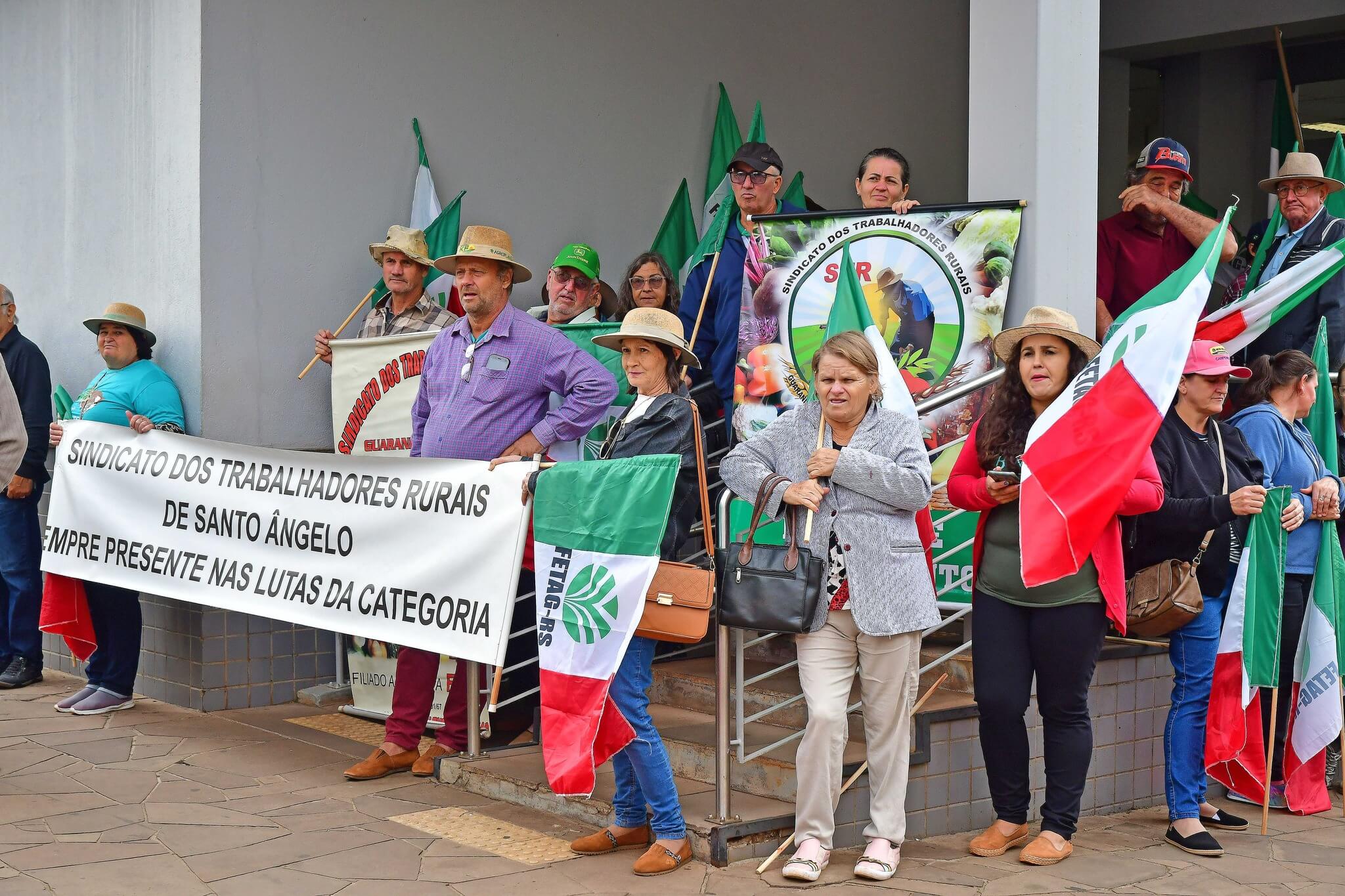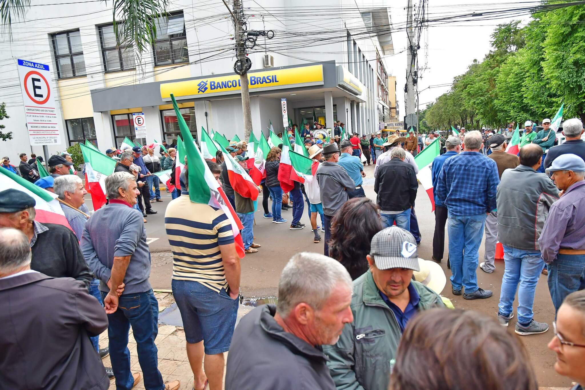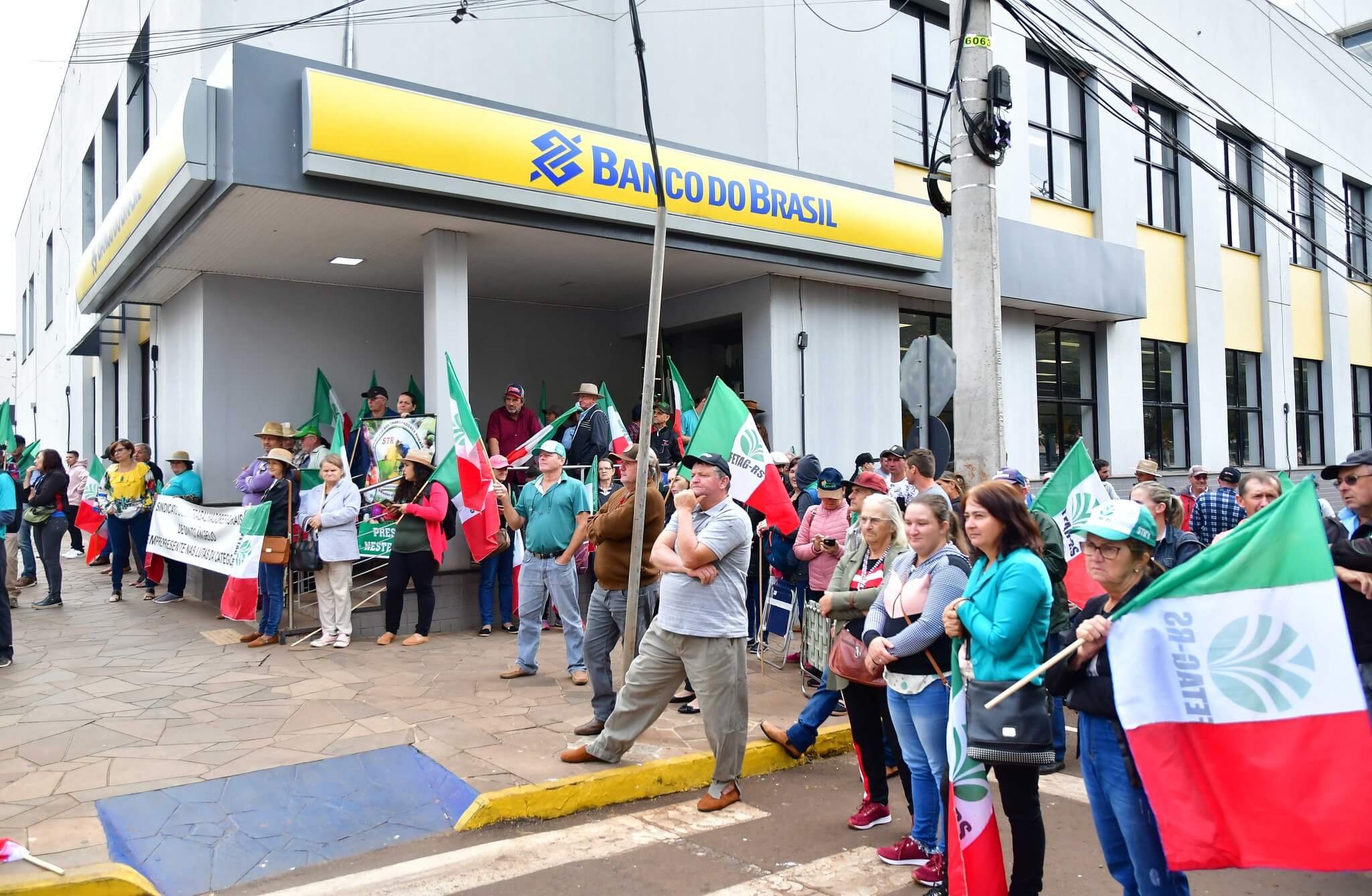 Agricultores familiares da região estiveram mobilizados se reunindo em frente a agências bancárias de Santo Ângelo nesta quarta-feira, 19