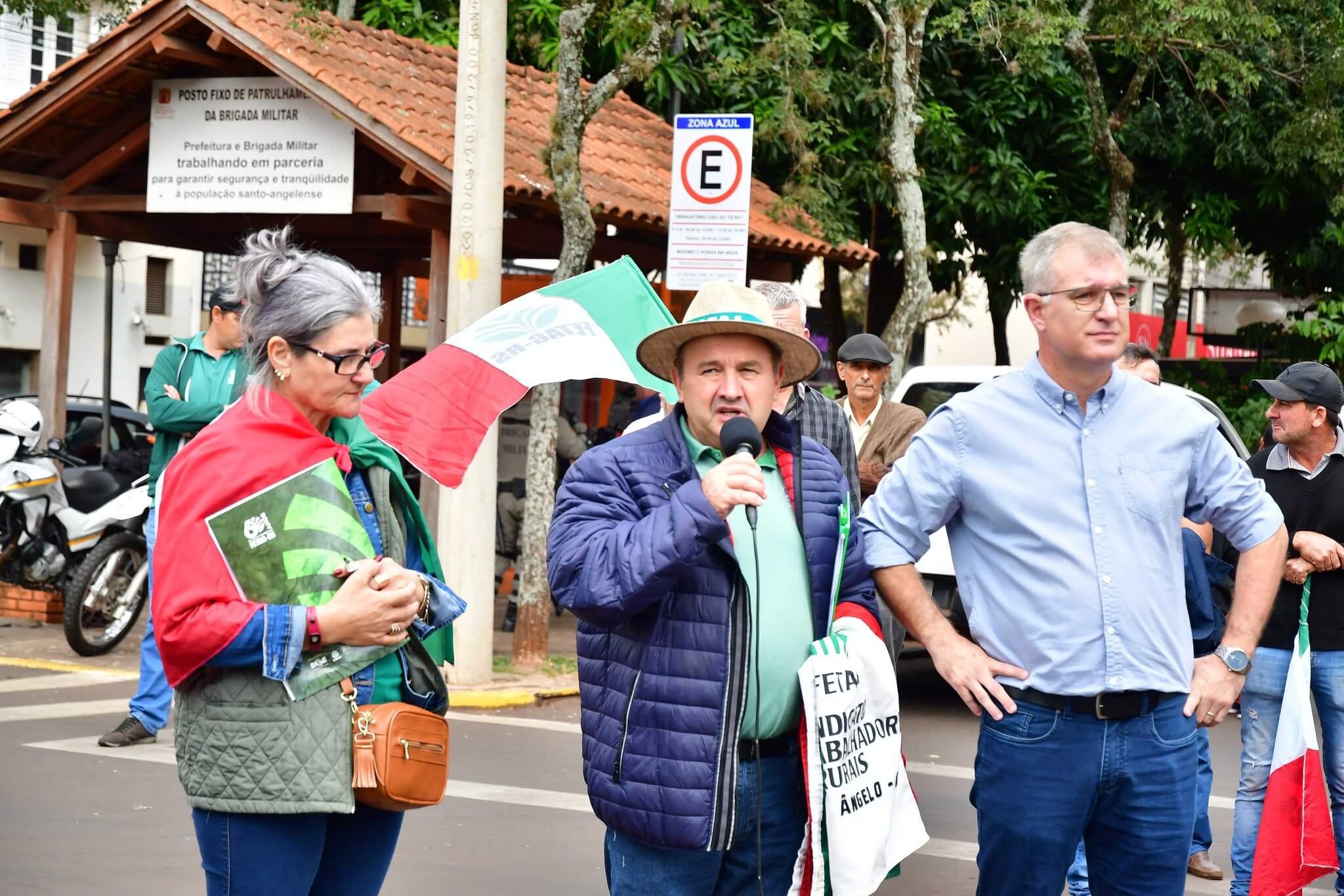Jacques destacou a formalização de cerca de 20 agroindústrias, gerando empregos, aumentando a renda e mantendo famílias no meio rural. Também citou as obras que estão sendo realizadas de ampliação do Pavilhão da Avenida Venâncio Aires, com a construção de espaço fechado para a realização de eventos, e a construção do local para a feira de produtores da Zona Norte. Igualmente ressaltou os programas de diversificação de culturas como alternativa de renda para o meio rural. “Atos como este são importantes para expor as necessidades e valorizar a importância da agricultura familiar”, afirmou o prefeito, acrescentando que as três estiagens consecutivas estão causando muito prejuízos para os produtores, que precisam de auxílio do poder público, observando que em Santo Ângelo o Governo Municipal procura auxiliar com iniciativas como abertura de bebedouros, limpeza e construção de açudes, com uso de equipamentos próprios e contratação de terceirizados para atender a demanda.