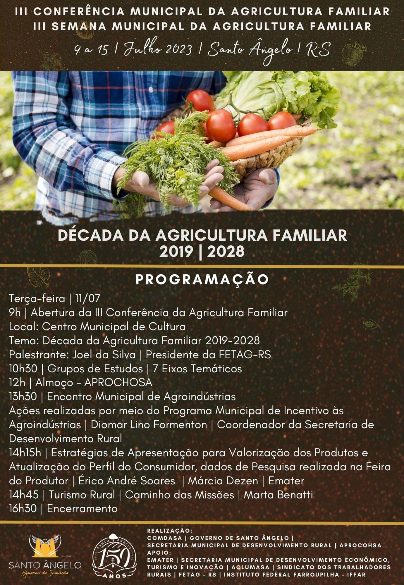 O auditório do Centro Municipal de Cultura sedia nesta terça-feira, 11, a terceira edição da Conferência Municipal da Agricultura Familiar e a terceira Semana da Agricultura Familiar.
