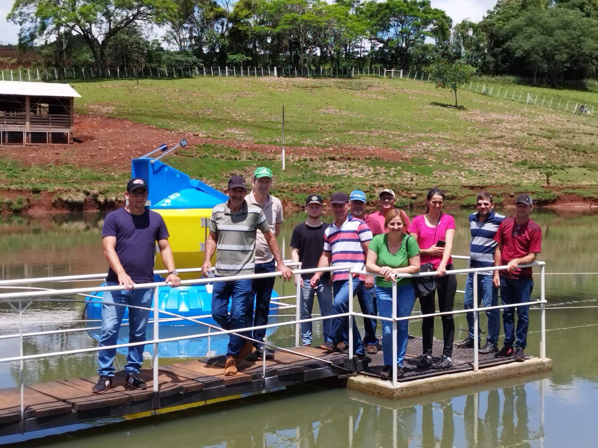 Desta visita técnica participaram sete agricultores santo-angelenses que pretendem apostar na criação de tilápias como uma nova atividade de geração e renda, os técnicos Eduardo Piton e Marcel Zingler da NutriMaio Agronegócios, o secretário Álvaro, assessora Marita Minetto, técnico em Agropecuária Gabriel Froes e estagiária de Agronomia Ana Carolina Meotti.
