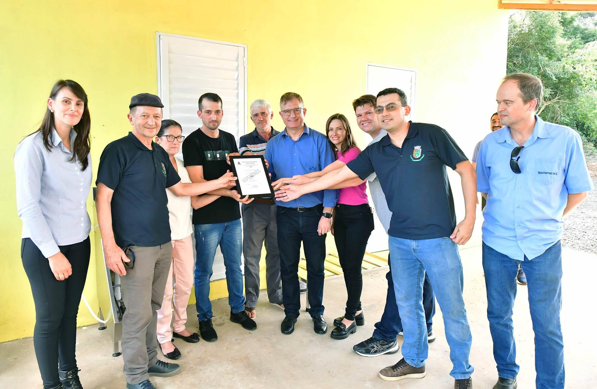 No ato, o prefeito Jacques, o secretário de Desenvolvimento Rural, o médico veterinário Anthony Sartori e a equipe técnica do Serviço de Inspeção Municipal (SIM), efetuaram a entrega do alvará ao proprietário da agroindústria.