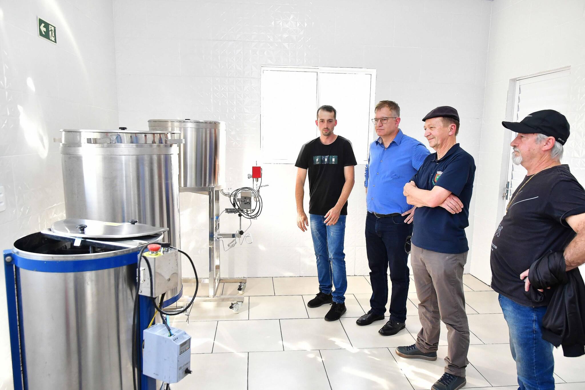 Santo Ângelo ganhou na tarde desta sexta-feira, 7, a sua 29ª agroindústria formalizada e contemplada com os benefícios da lei municipal de Incentivo às Agroindústrias e à Agricultura Familiar, a Apis Missões, a primeira na área de beneficiamento de mel. “O papel do poder público é criar um cenário favorável para os empreendedores, estimulando os negócios e a geração de emprego e renda, no campo e na cidade”, afirmou o prefeito Jacques Barbosa na cerimônia inaugural, na propriedade rural da Família Silveira, no Rincão dos Meotti.