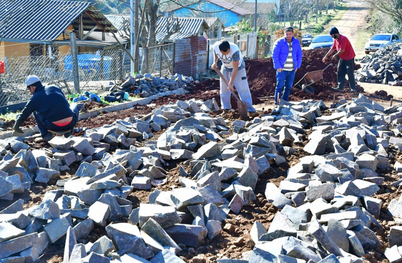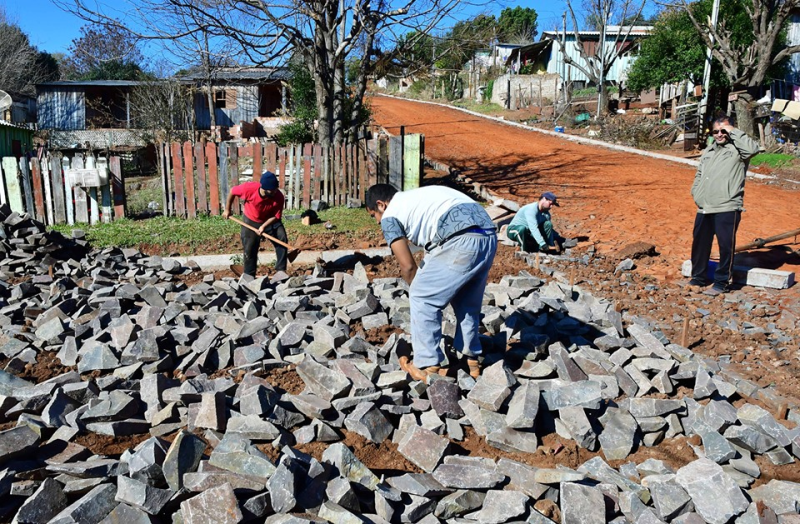 A empreiteira NF Empreendimentos está realizando o calçamento com pedras poliédricas, a colocação dos cordões laterais e fará ainda os passeios públicos. O empreiteiro Márcio da Rosa estima que serão necessários cerca de 40 dias de trabalho efetivo para a conclusão das obras. “O período total vai variar, já que dependemos do clima para a realização do trabalho”.