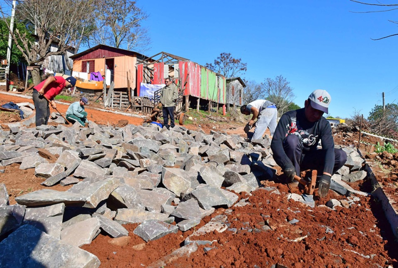 Duas quadras da Travessa B, entre as ruas Jacinto Lutz dos Santos e Rubens Corrêa do Nascimento, estão recebendo os ajustes finais. Neste trecho, foram executados 150 metros de calçamento.