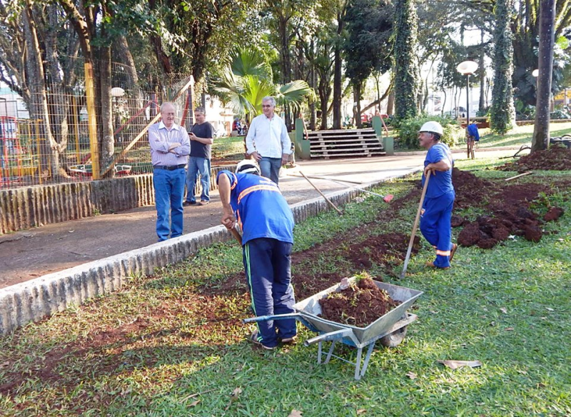 Com agenda reservada para vistoriar algumas das obras mantidas em andamento pelo Governo Municipal, o prefeito em Exercício e o secretário de Obras estiveram acompanhando a instalação da nova e moderna iluminação pública na Praça Leônidas Ribas, a Praça do Brique. A empresa contratada está executando a construção das caixas de energia e instalação da tubulação para a condução dos fios elétricos. A previsão é de que em 15 dias, a praça já comece a receber as novas luminárias de led.
