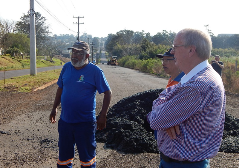 Hesse e Queiroz também acompanharam as obras de recuperação asfáltica no prolongamento da Avenida Salgado Filho, trecho entre a Rua Maria Tonetto Araújo e a RS 218 – extensão da Avenida Sagrada Família. Segundo informou o secretário de Obras, a recuperação do asfalto atende centenas de moradores do Residencial Terra Missões e usuários que utilizam o trecho para o deslocamento diário.