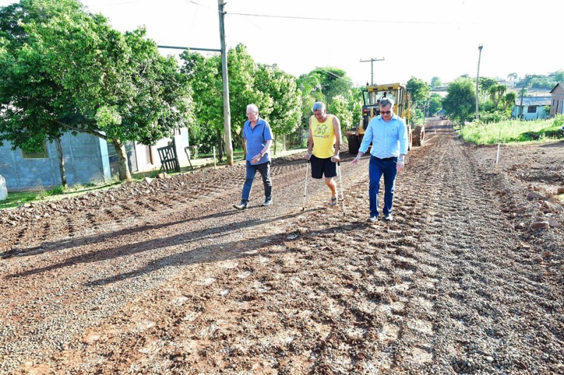 O asfaltamento do trecho de quatro quadras, entre as São Nicolau e São Paulo, interligando os bairros Hortência e Padoim, está sendo executado com recursos do ressarcimento da CORSAN para revitalização do asfalto em ruas que receberam intervenções da companhia.