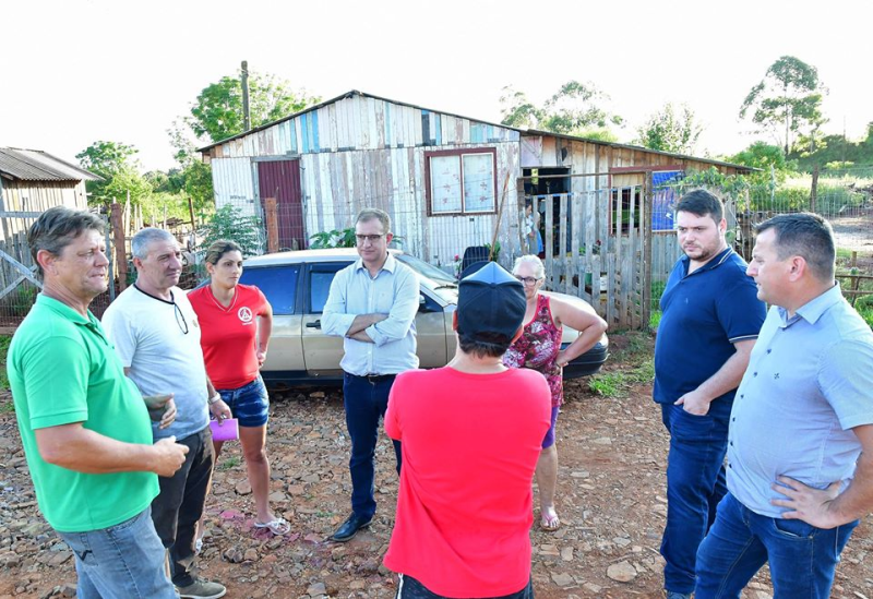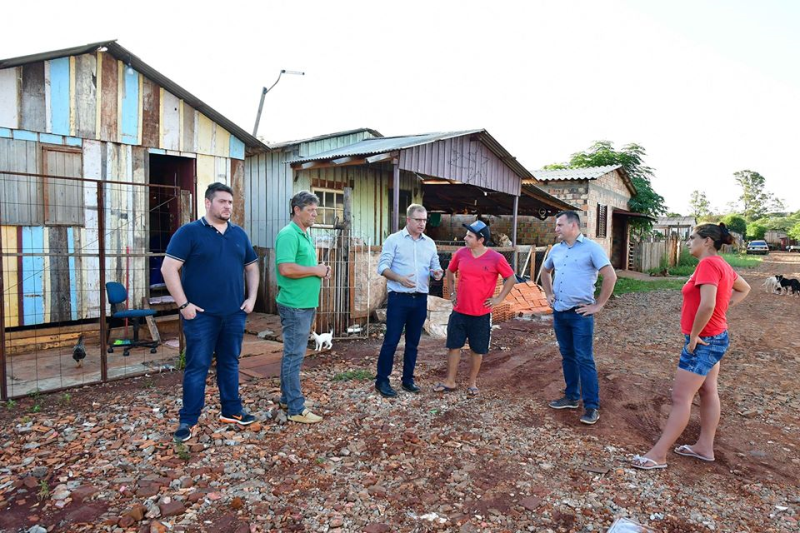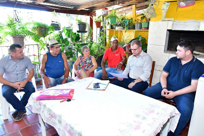 No Bairro União, Jacques, os vereadores Maurício Loureiro e Márcio Antunes, e o diretor da Secretaria de Obras, Valter Larri Hoslbach reuniram-se com os líderes Tiago Alves da Silva e Tatiana Machado.