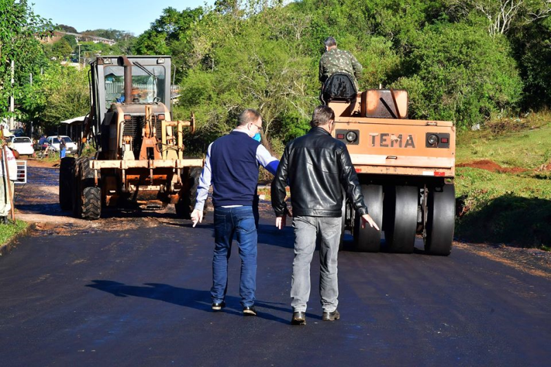 No final da tarde de quinta-feira, 14, o prefeito Jacques, acompanhado do secretário de Obras e Serviços Urbanos, Valter Larri Hoslbach, esteve vistoriando as obras de pavimentação asfáltica em trecho de 520 metros da Rua Marcelino Champagnat, trecho entre o acesso à RS 344 até o seu final.