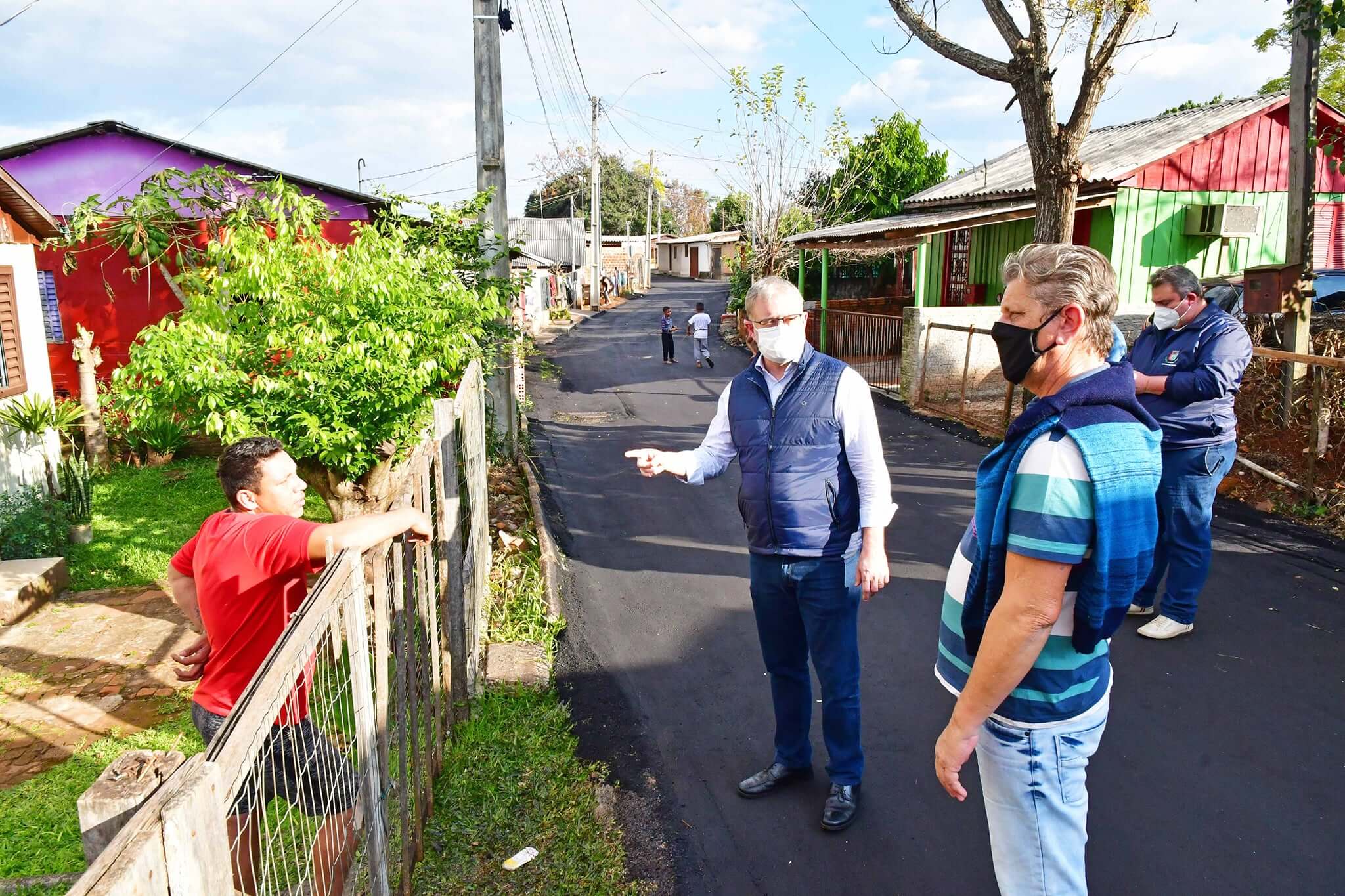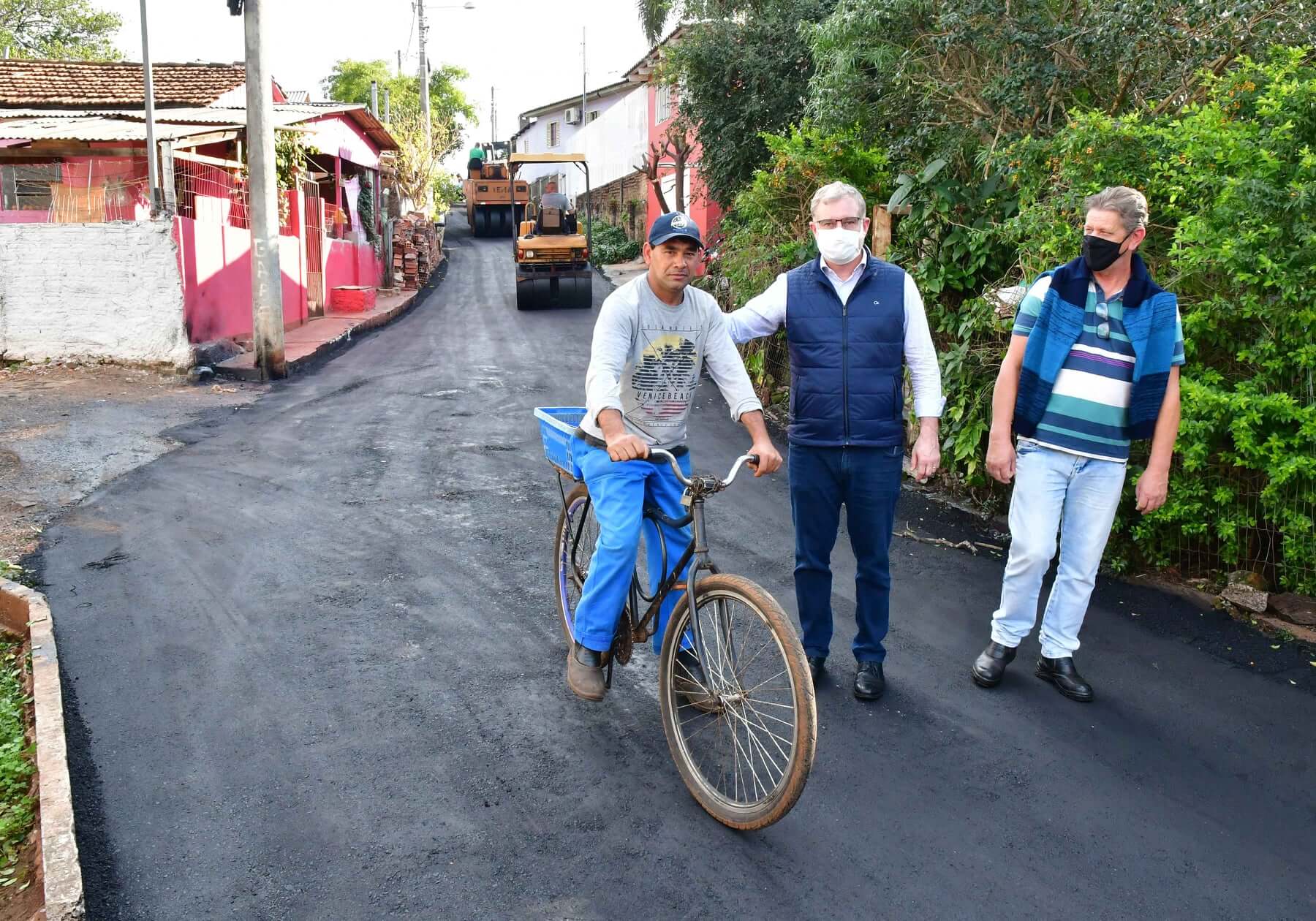 O prefeito Jacques Barbosa, acompanhando do diretor de Obras da SEMMA, Larri Holsbach, esteve acompanhando as obras de cobertura asfáltica nas principais ruas dos bairros, ouvindo moradores e anunciando novos investimentos na modernização do sistema de iluminação pública e na sinalização viária.