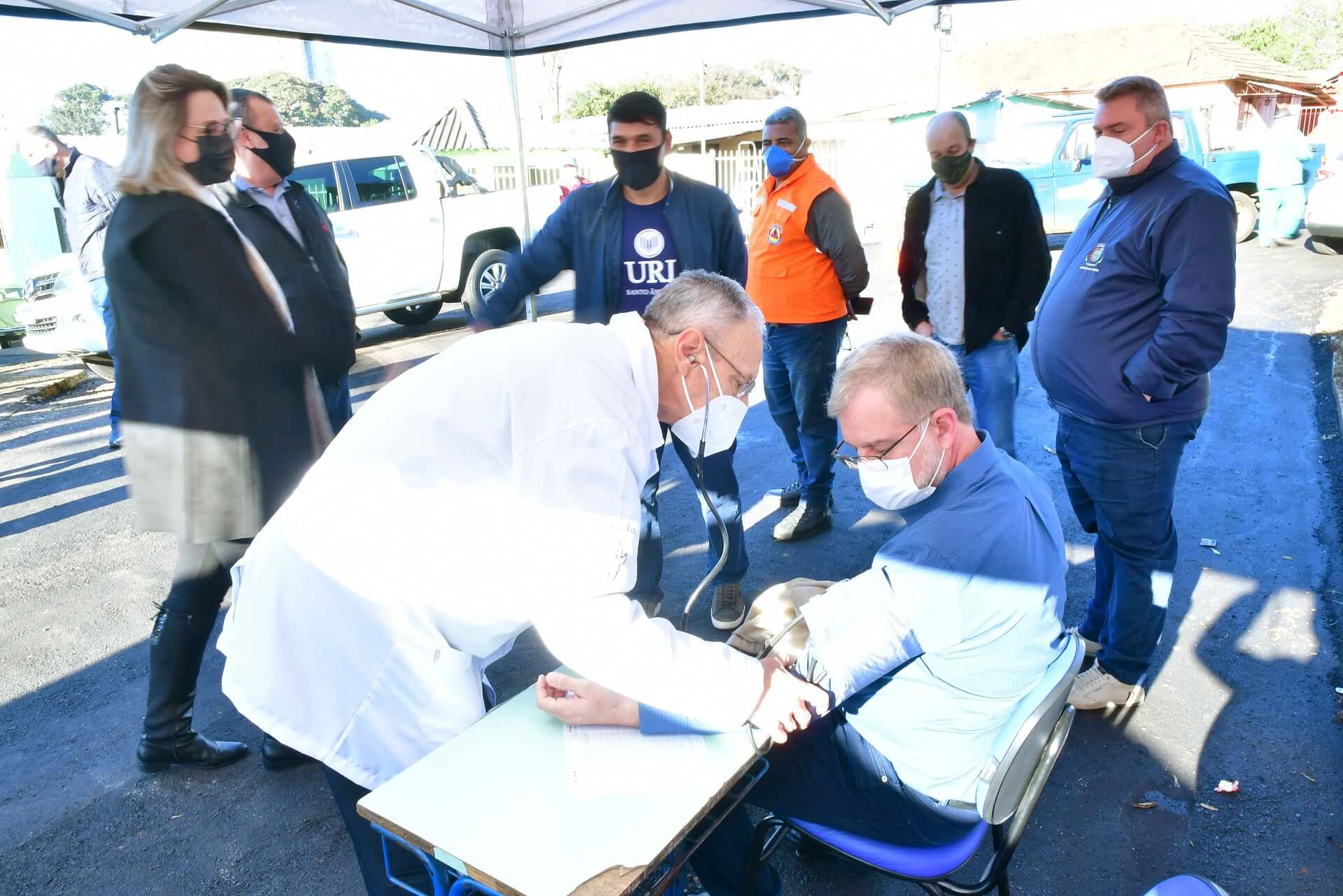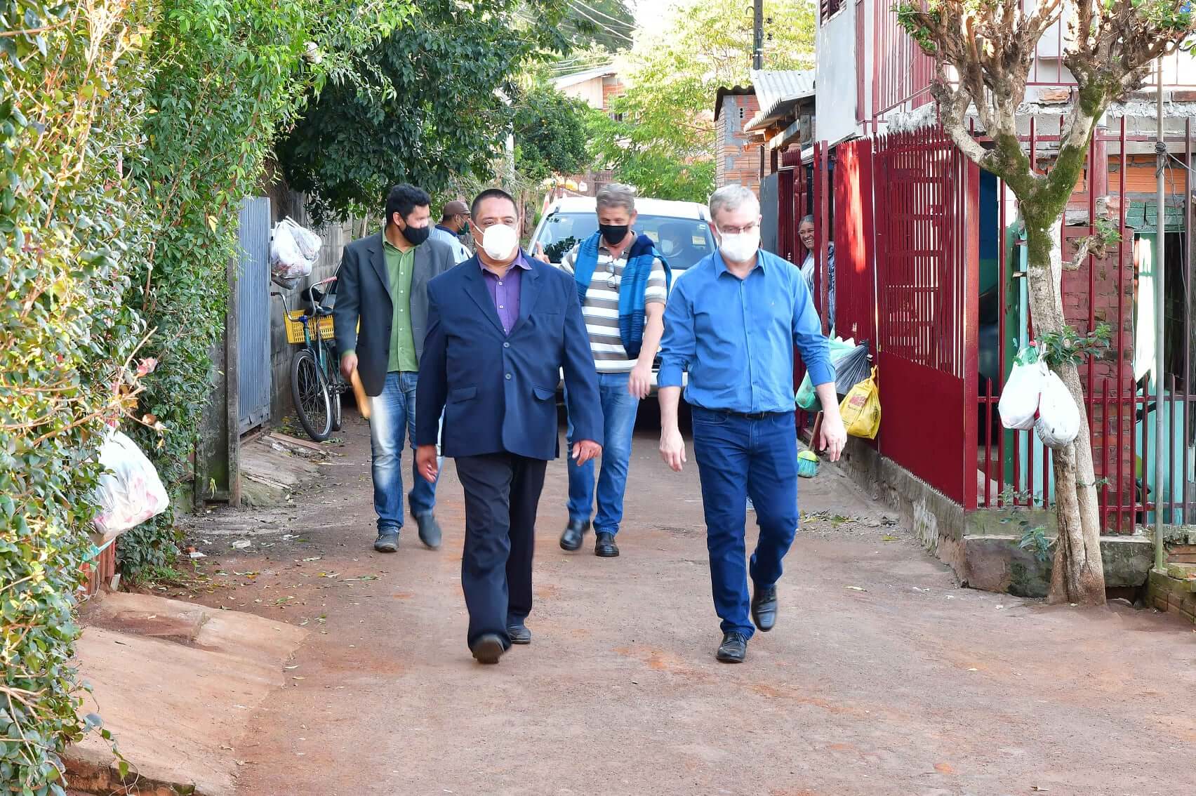 O prefeito também esteve visitando os moradores, acompanhado do vice-prefeito Volnei Teixeira, do deputado Eduardo Loureiro, secretários municipais, diretores de departamentos da administração pública e vereadores.