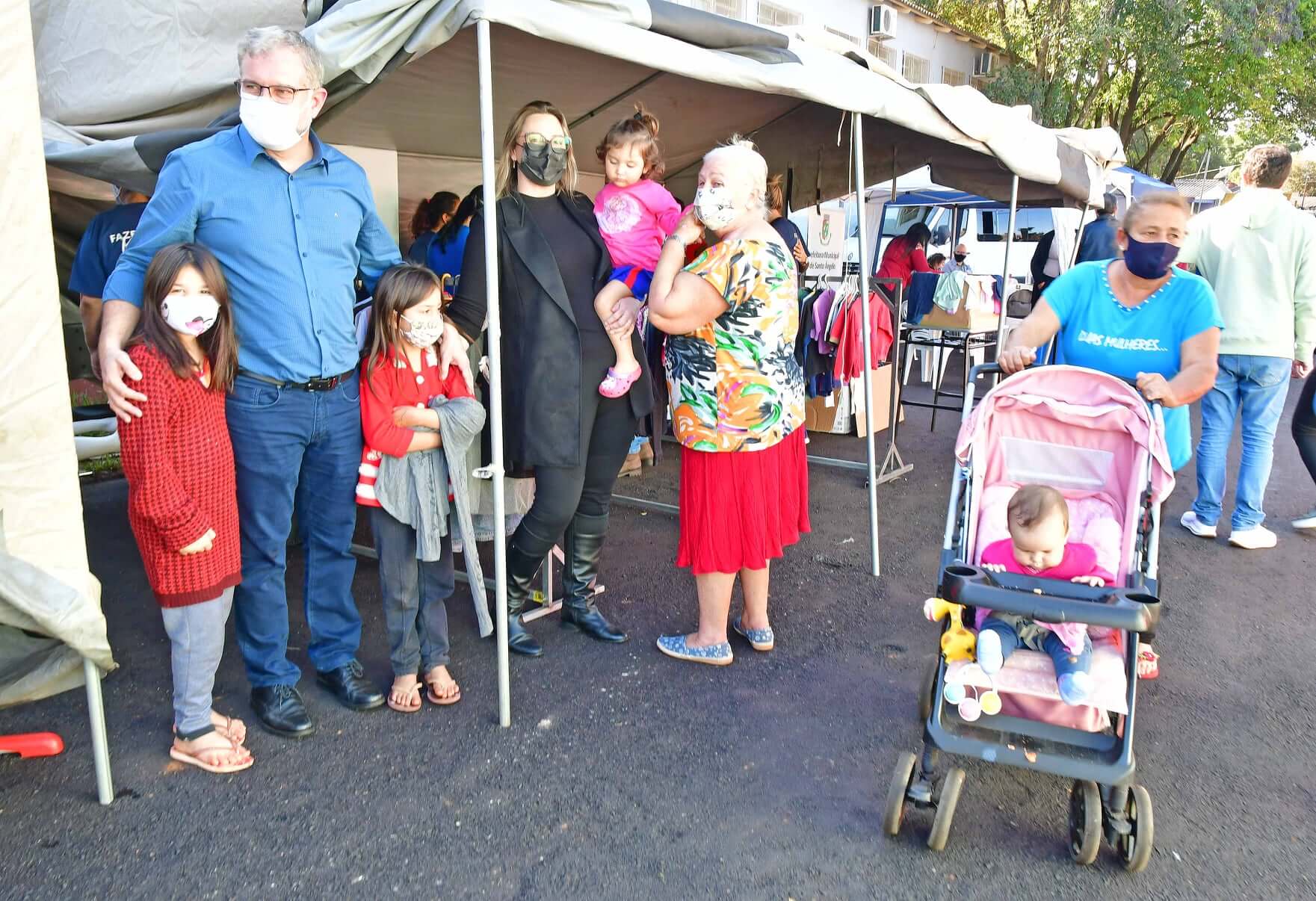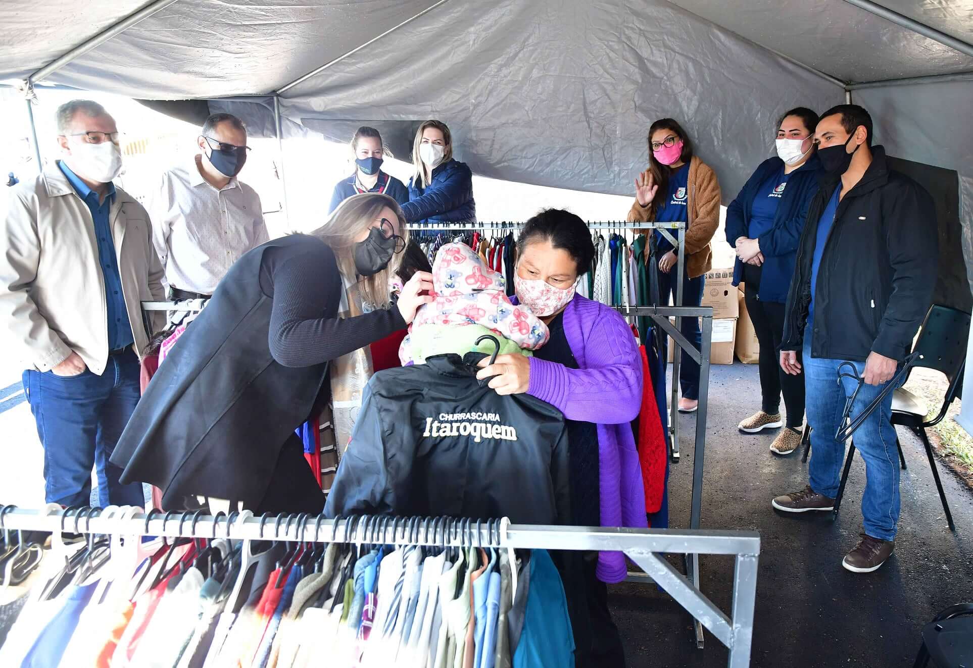 Enquanto assistentes sociais da Secretaria Municipal de Desenvolvimento Social visitaram as residências para atualização cadastral das famílias que recebem algum benefício dos programas sociais e levantamentos para o Banco de Materiais de Construção, a Central do Bem organizou o “Cabide do Bem”, com a distribuição de roupas, calçados e agasalhos.
