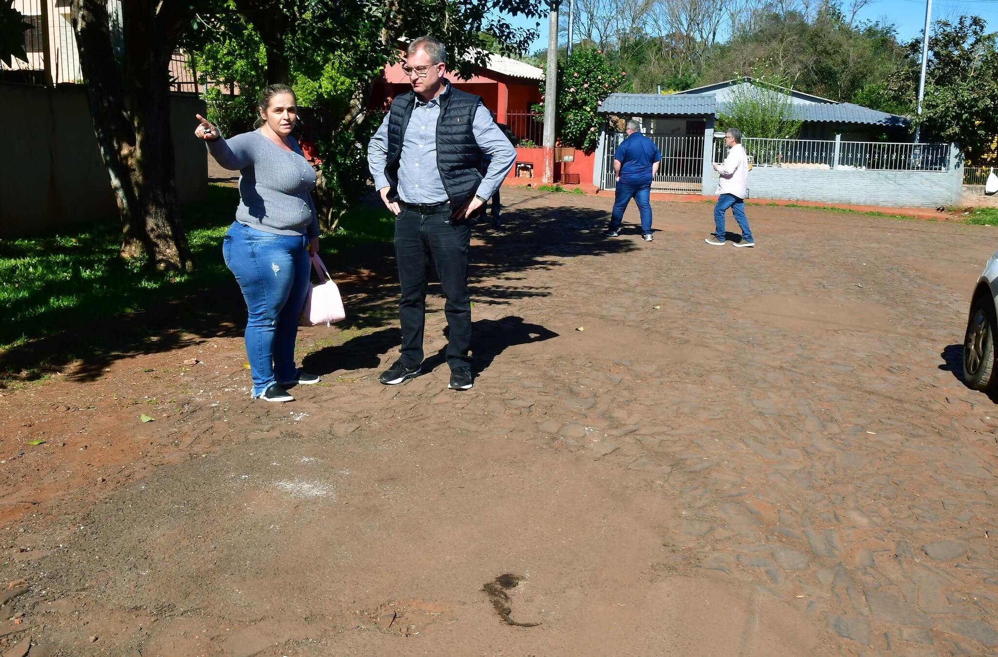 Na Travessa Arlindo Lenke, no Bairro São Carlos, o prefeito determinou obras de melhoria no sistema de drenagem pluvial.