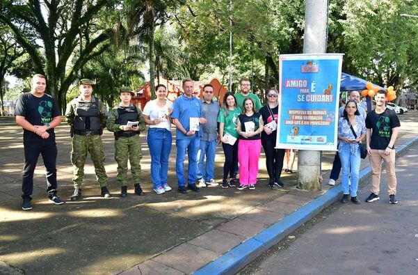 Uma ação de conscientização sobre o crime de maus-tratos aos animais é realizada nesta sexta-feira (26) na Praça Leônidas Ribas, em Santo Ângelo. A ação está relacionada ao “Abril Laranja”, mês de combate à crueldade animal, o ato integrado buscou conscientizar a comunidade com a distribuição de folderes informativos.