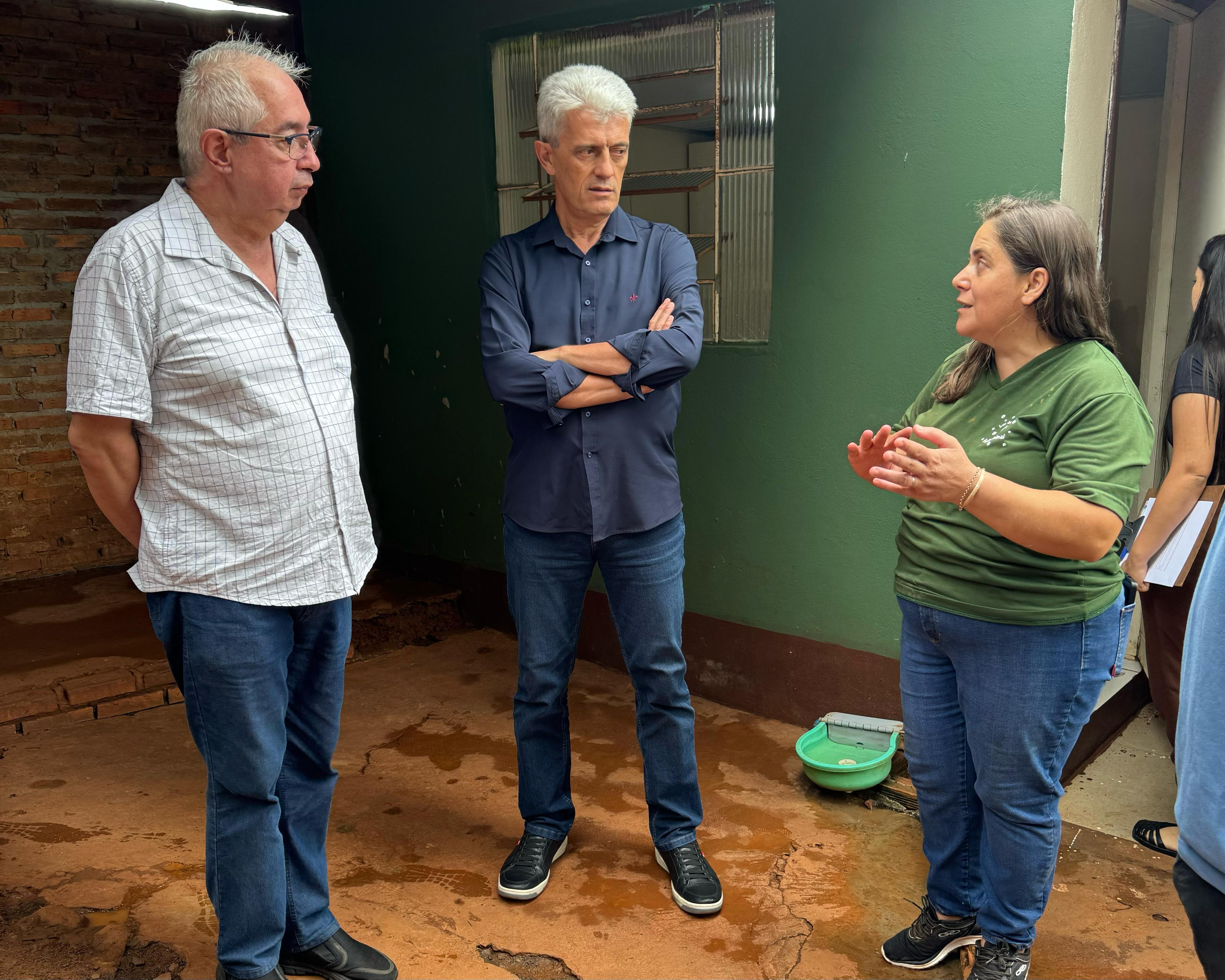 Nesta quinta-feira (13), o prefeito de Santo Ângelo, Nívio Braz, visitou o Lar de Passagem Amor Animal, localizado em Entre-Ijuís, acompanhado do secretário de Meio Ambiente e Desenvolvimento Urbano, André Pedroso, e do diretor do Setor de Proteção e Bem-Estar Animal, Carlos Marques. O objetivo da visita foi conhecer de perto o trabalho realizado e fortalecer a parceria entre as instituições.
