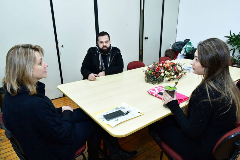 A primeira-dama Juliana Barbosa recebeu nesta segunda-feira, 9, os representantes do Rotaract Club Santo Ângelo, o presidente Joctã Eliézer Gonçalves e a vice-presidente Fabiana Figur Barz, que trouxeram doações para a Campanha do Agasalho 2018.