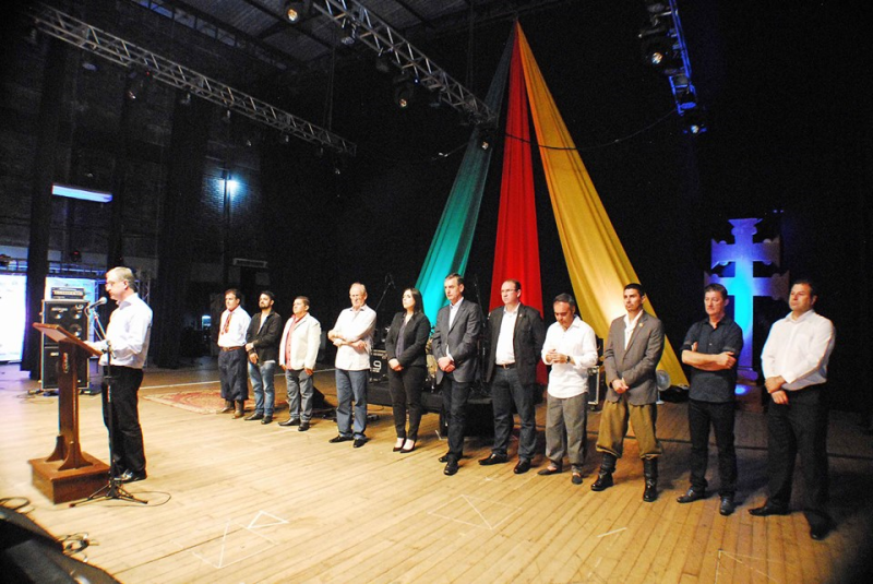 O prefeito Jacques Barbosa e autoridades gaúchas abriram oficialmente na noite desta quinta-feira, 22, a 11ª edição do Canto Missioneiro da Música Nativa e 10º Canto Piá Missioneiro, com as dependências do Teatro Municipal Antônio Sepp completamente tomadas pelo público.