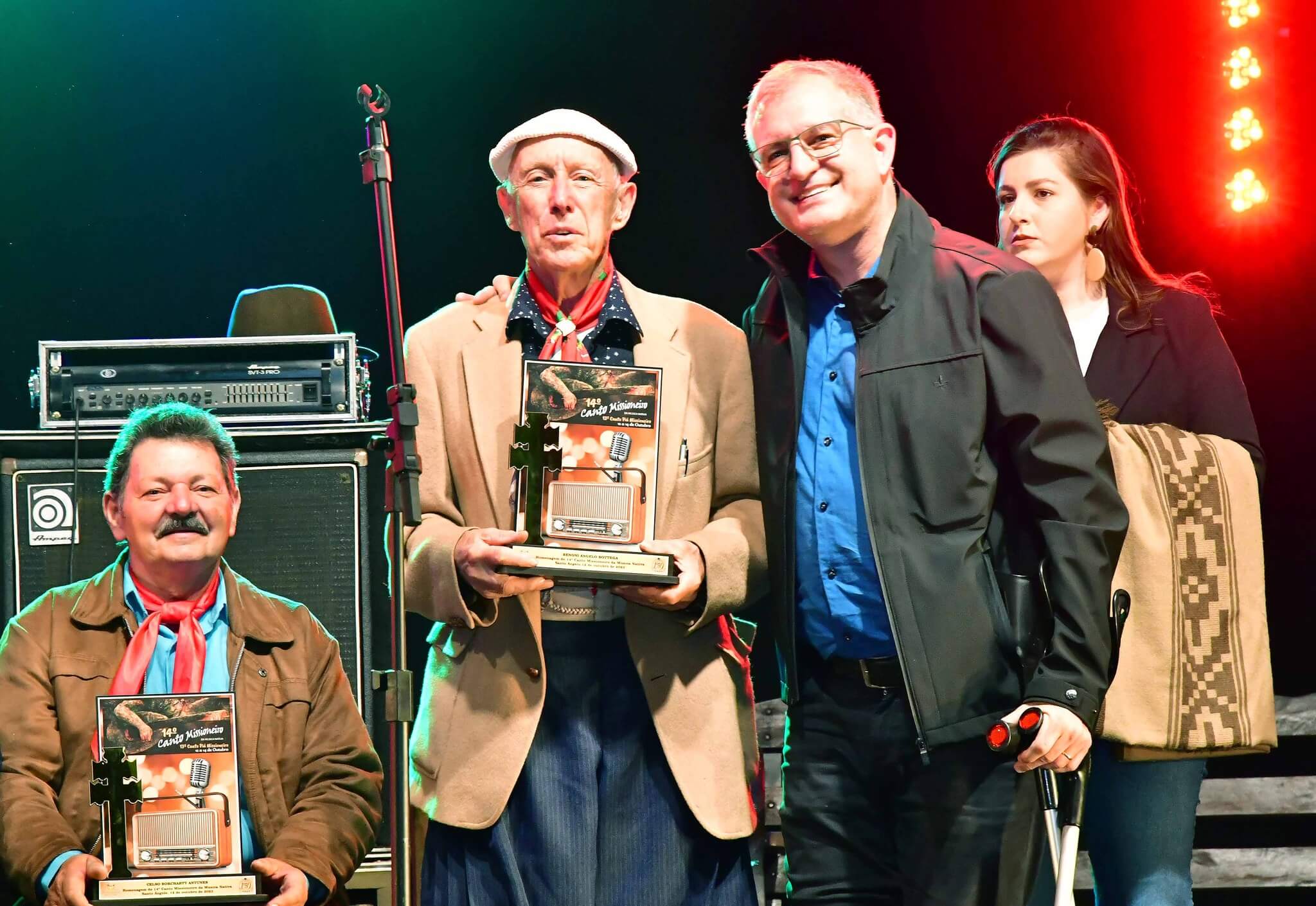 Foram homenageados os radialistas Benoni Bottega, Celso Antunes Borchart, César Menezes, João Ernesto Castro – in memoriam -, Mário Gattini, Nerci Ramos Teixeira, Nilson Antão Sodré do Amaral, Osvaldo de Paula, Miro Dutra e Ubirajara Kruel. Os agraciados e familiares receberam os troféus da presidência da 14ª edição em reconhecimento aos serviços prestados à música gaúcha e missioneira.