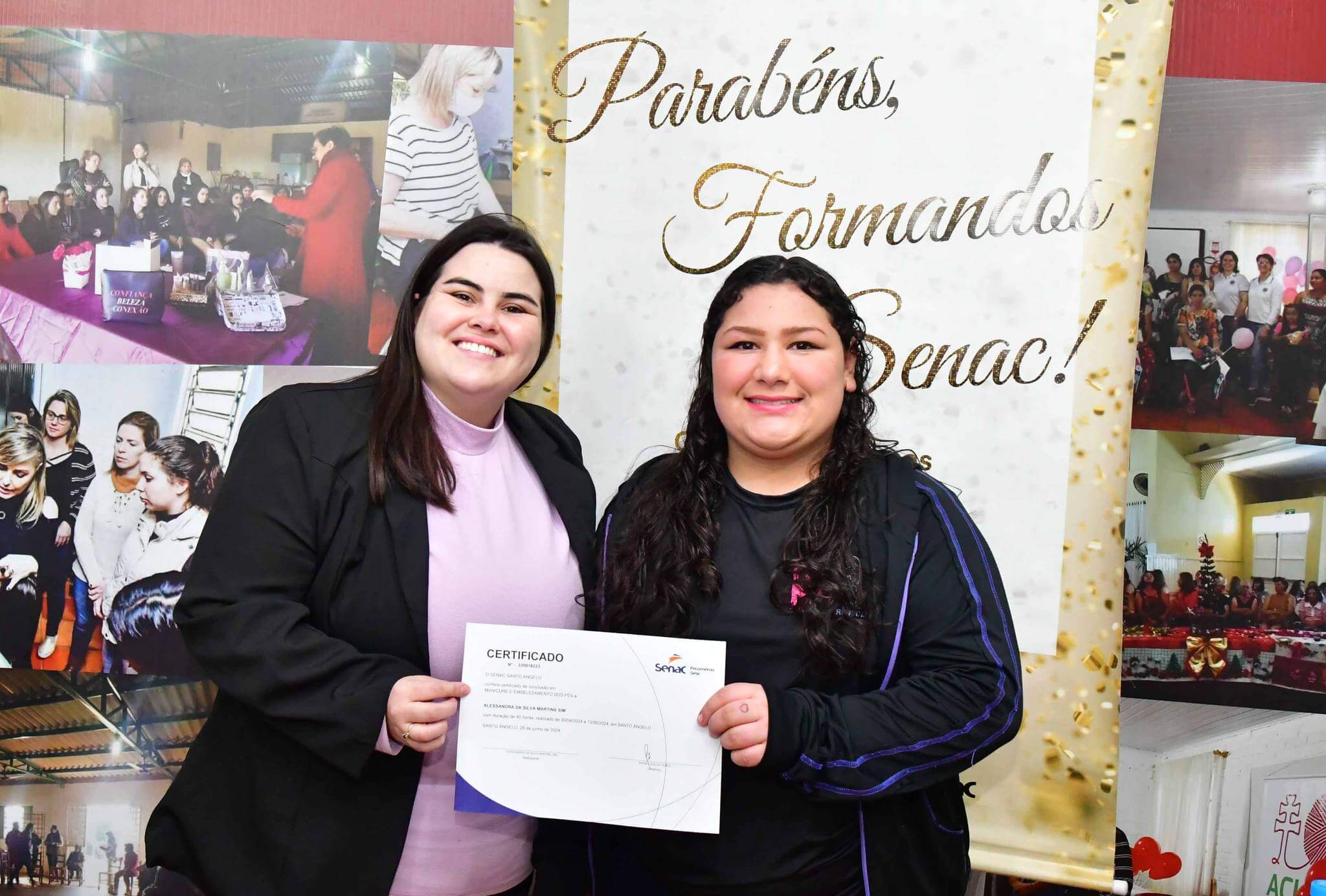 Estiveram presentes no ato, o coordenador de cursos do Senac Santo Ângelo, Gessiel Moreira; Tassiana Ribeiro, diretora da Central do Bem e equipe do departamento; Talia Lipstein, instrutora do curso; Gilberto Corrêa Taborda, presidente do Cededica; pastor Eliseu Krummenauer, do Centro de Acolhimento Martinho Lutero e Rosane Lorato, do Cededica.