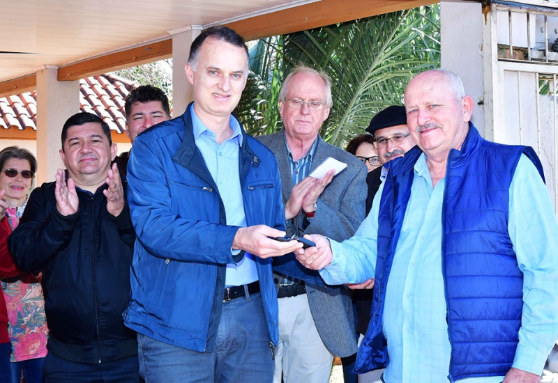 As chaves do veículo foram entregues pelo assistente de Gabinete da DRF local, Jorge Luis de Lima Atencia, representando o delegado Lauri Wilchen, ao presidente do lar, Jerônimo Riechel, na presença do secretário municipal de Assistência Social, Trabalho e Cidadania, Everaldo de Oliveira, do vereador Paulo Sérgio dos Santos e Silva, o Paulão, e dos diretores da entidade mantenedora do asilo, Cairo Abreu Ribeiro, Tanara Mantovani, José Taceli Moureira, Luís Marques e Rudinei Paz.