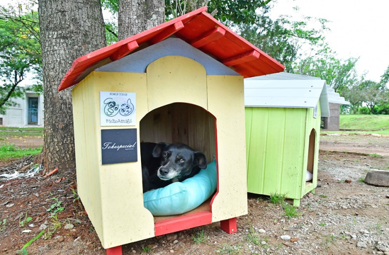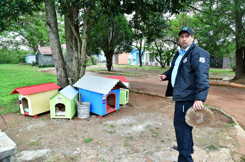 O vigilante Lari Medina afirma que foram citados cinco cães, mas um deles não ficava no cemitério, esporadicamente aparecia por lá. “Ele estava aqui quando o pessoal da ONG apareceu, por isso foram colocadas cinco casinhas”, reforça.