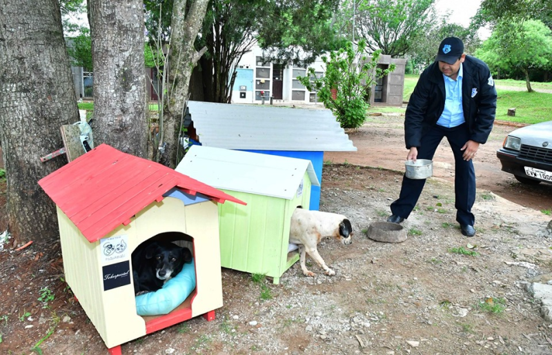 As cinco casas de madeira foram colocadas ao lado do centro administrativo, onde os vigilantes e o zelador Flori Rodrigues colocam água e ração. Medina afirma que a ração é adquirida pelos servidores. “Nós gostamos da presença dos cães. Em nenhum momento pensamos em retirá-los. Eles servem de companhia e até nos acompanham nas rondas que fizemos pelo cemitério”, afirma Medina.