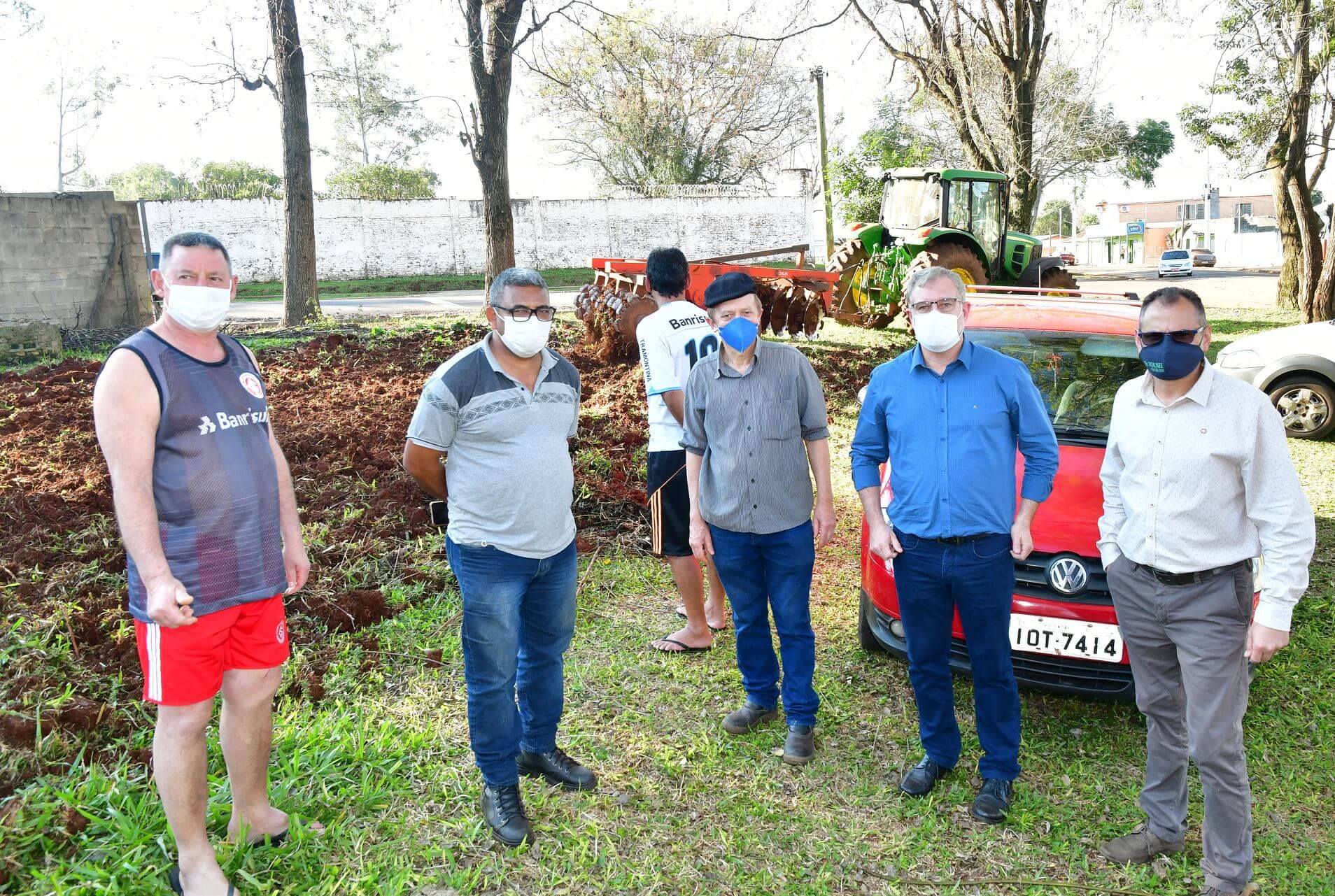 A preparação do terreno para a horta começou na sexta-feira, dia 9, durante a realização do Programa Prefeitura nos Bairros, com a presença do prefeito Jacques Barbosa; do vice-prefeito Volnei Teixeira; dos vereadores Márcio Antunes e Vando Ribeiro de Souza; do presidente da ASPOMM, Paulo da Rosa; do coordenador de Projetos da SDR, Diomar Formenton; do diretor de Obras da Secretaria do Meio Ambiente e Desenvolvimento Urbano, Larri Holsbach; e dos moradores Eder Oliveira e Francisco Ribeiro, que estão engajados na instalação da horta.