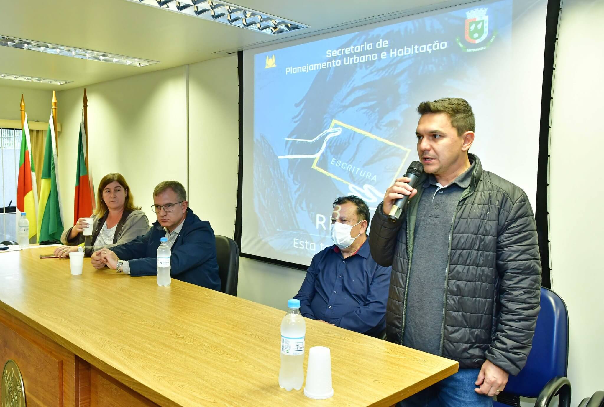 Santo Ângelo avança o seu Programa de Regularização Fundiária (REURB) com a assinatura da ordem de serviço de início dos trabalhos de formalização de lotes urbanos nos bairros Colmeia (72 lotes), Garibaldi Carrera Machado (157) e Backes (36), beneficiando 265 famílias.