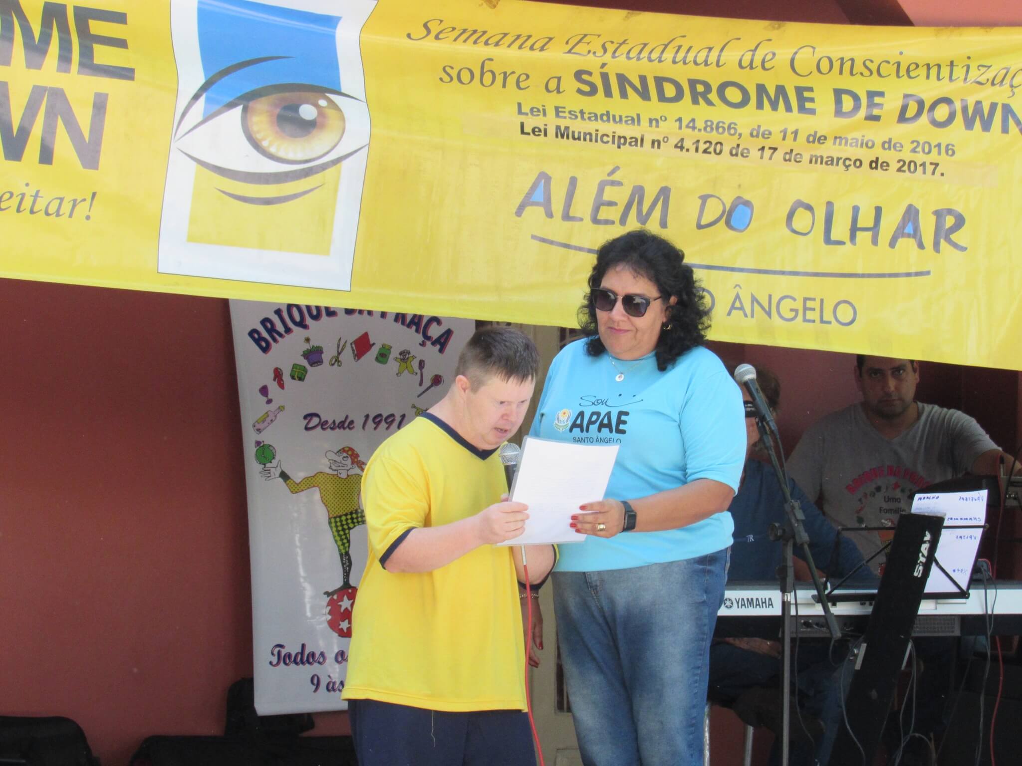 A atleta down Mariane Lomar, que recentemente conquistou medalhas de 2º e 3º lugar no campeonato brasileiro de atletismo, recebeu uma homenagem especial. E os alunos da Escola de Educação Especial Raio de Sol, mantida pela Apae Santo Ângelo, realizaram uma apresentação teatral.