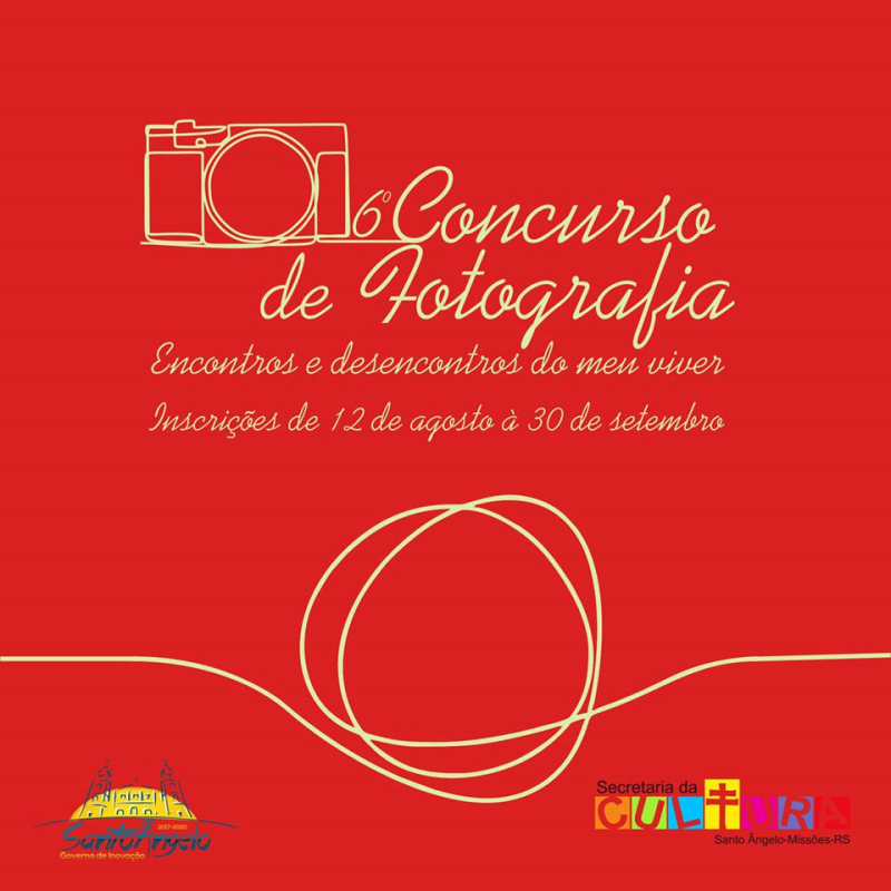 A partir da próxima segunda-feira, dia 12, abrem as inscrições para a 6ª edição do Concurso Amador de Fotografias de Santo Ângelo, uma realização do Governo Municipal, por meio da Secretaria de Cultura. O evento será lançado durante a cerimônia de abertura oficial da 27ª Semana Cultural, dia 12, às 19h30min, no Centro Municipal de Cultura – Rua Três de Outubro, 800.