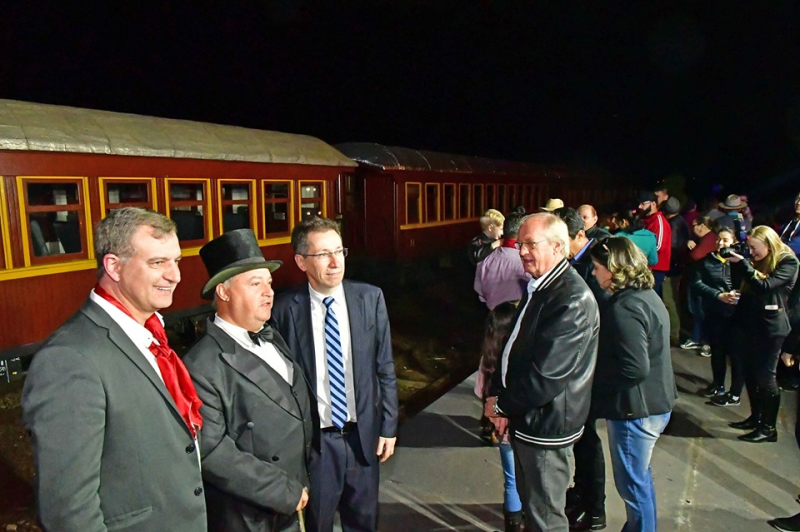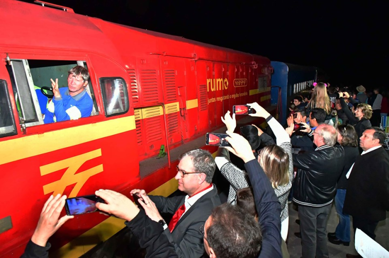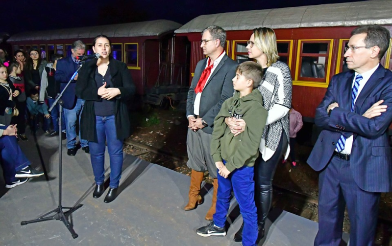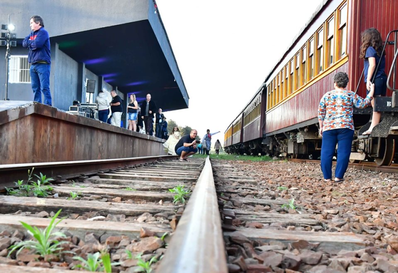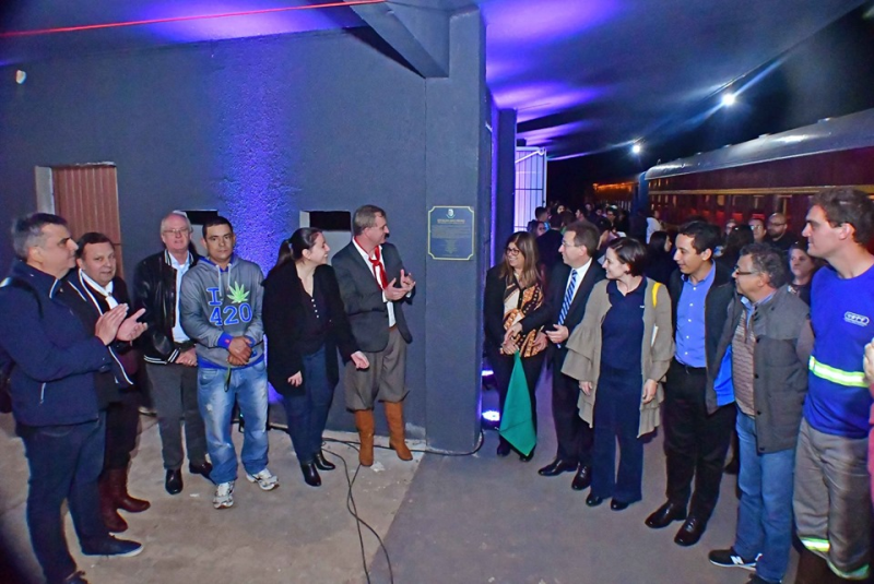 Por volta das 19 horas, com a chegada do último roteiro do dia do Trem das Missões, as autoridades recepcionaram centenas de pessoas na estação, entre eles, alunos das escolas Catarina Lépori e Margarida Pardelhas, e os representantes da empresa Rumo Logística, Giane Custódio, Carmem Maron, Elizângela Silva e Miguel Ângelo Evangelista Jorge, para o ato solene de descerramento da placa inaugural das obras de revitalização e modernização da Estação Ferroviária do Bairro São Pedro.