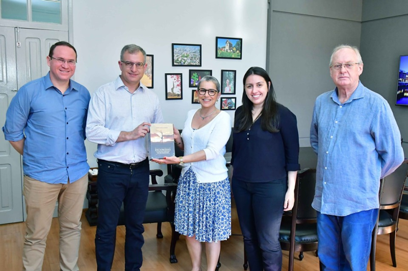 Na despedida, o prefeito recebeu o Dicionário da Cultura Pampeana Sul-Rio-Grandense, de Aldyr Garcia Schlee, para ser doado à biblioteca pública municipal de Santo Ângelo.
