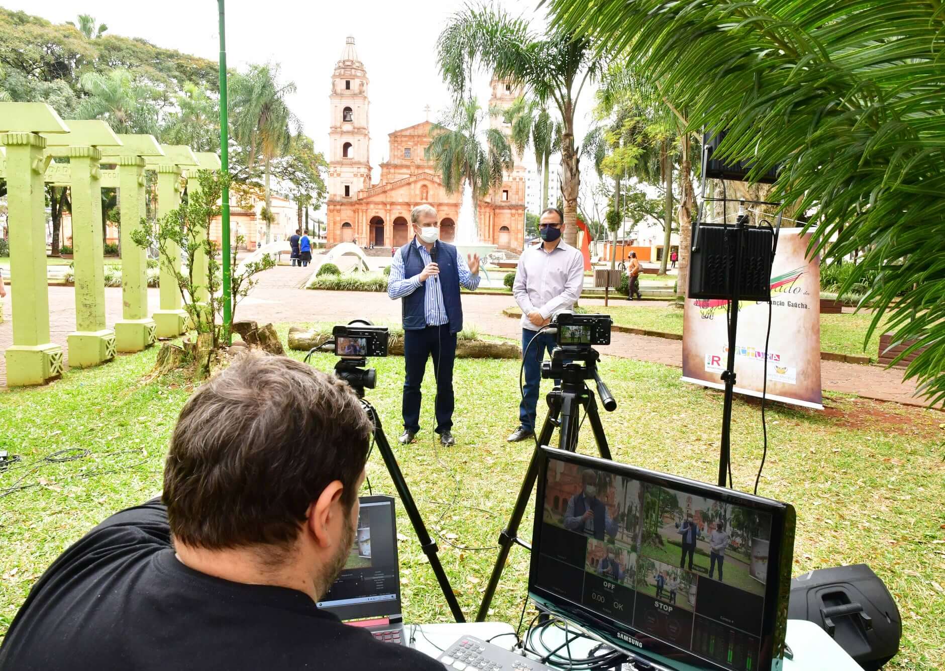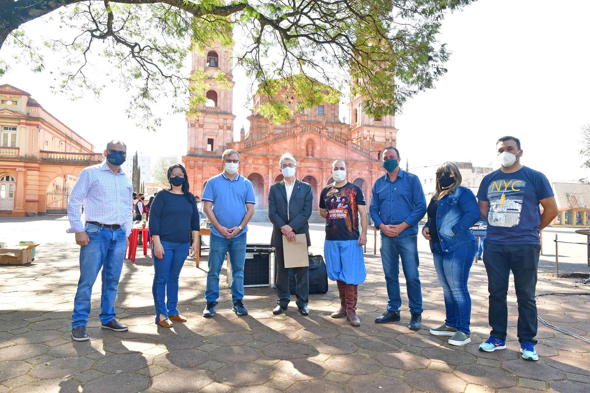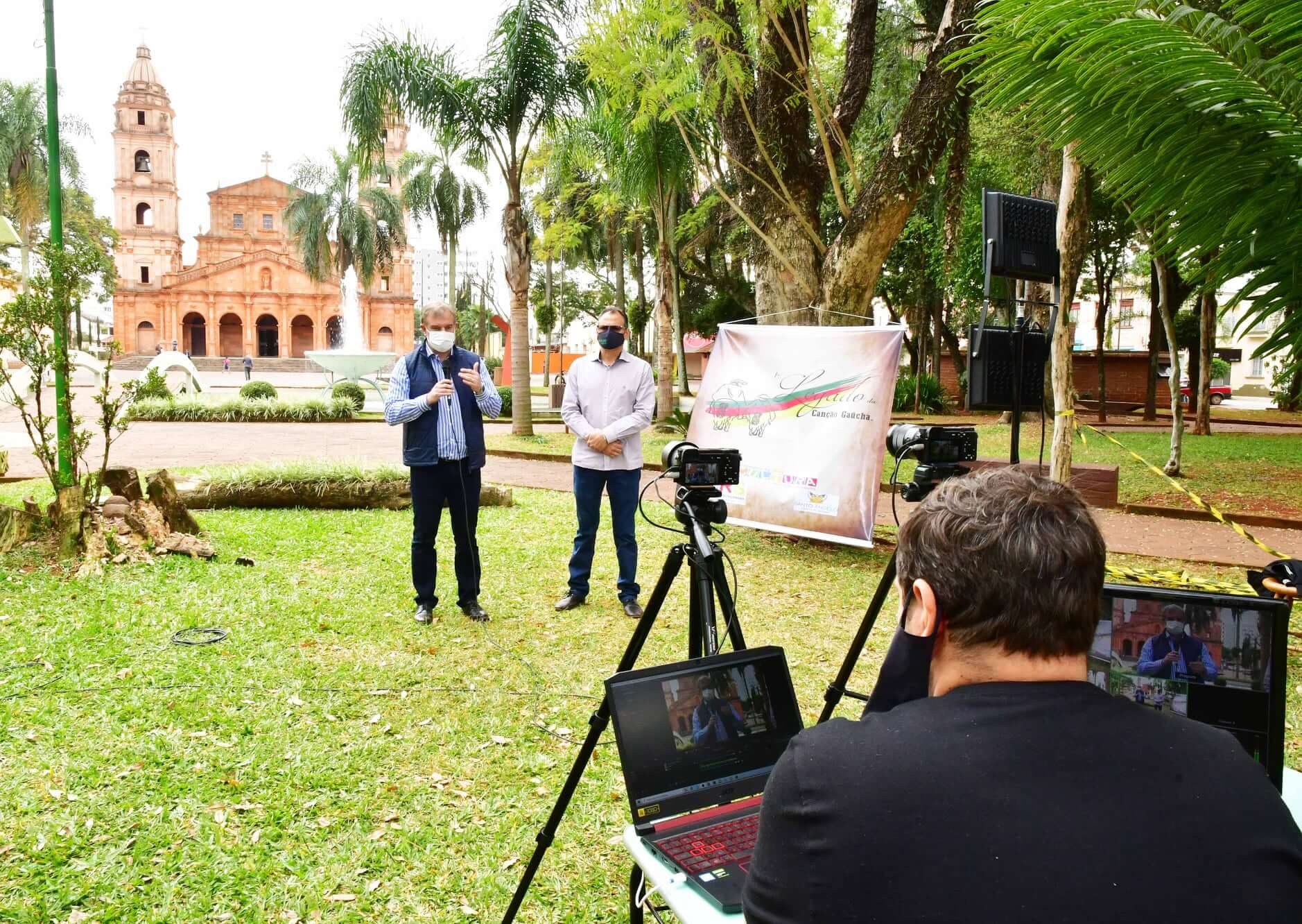 Na manhã desta segunda-feira (9), foi realizado no Centro Histórico o lançamento do 1º Festival Legado da Canção Gaúcha. O evento foi idealizado pelo cantor santo-angelense Murilo Vargas e será promovido por um grupo de amigos com apoio da Secretaria Municipal de Cultura, 14ª Coordenadoria Regional de Educação e Câmara de Vereadores. O evento ocorrerá em 9 de outubro, com transmissão via internet. Inscrições podem ser feitas até o dia 31 de agosto. Serão três categorias: Mirim – de 5 a 12 anos completos; Juvenil – de 13 a 17 anos completos e Sênior - 18 a 25 anos completos. A inscrição será realizada exclusivamente por meio eletrônico, no e-mail: legadodacancaogaucha@gmail.com, sem cobrança de taxa.