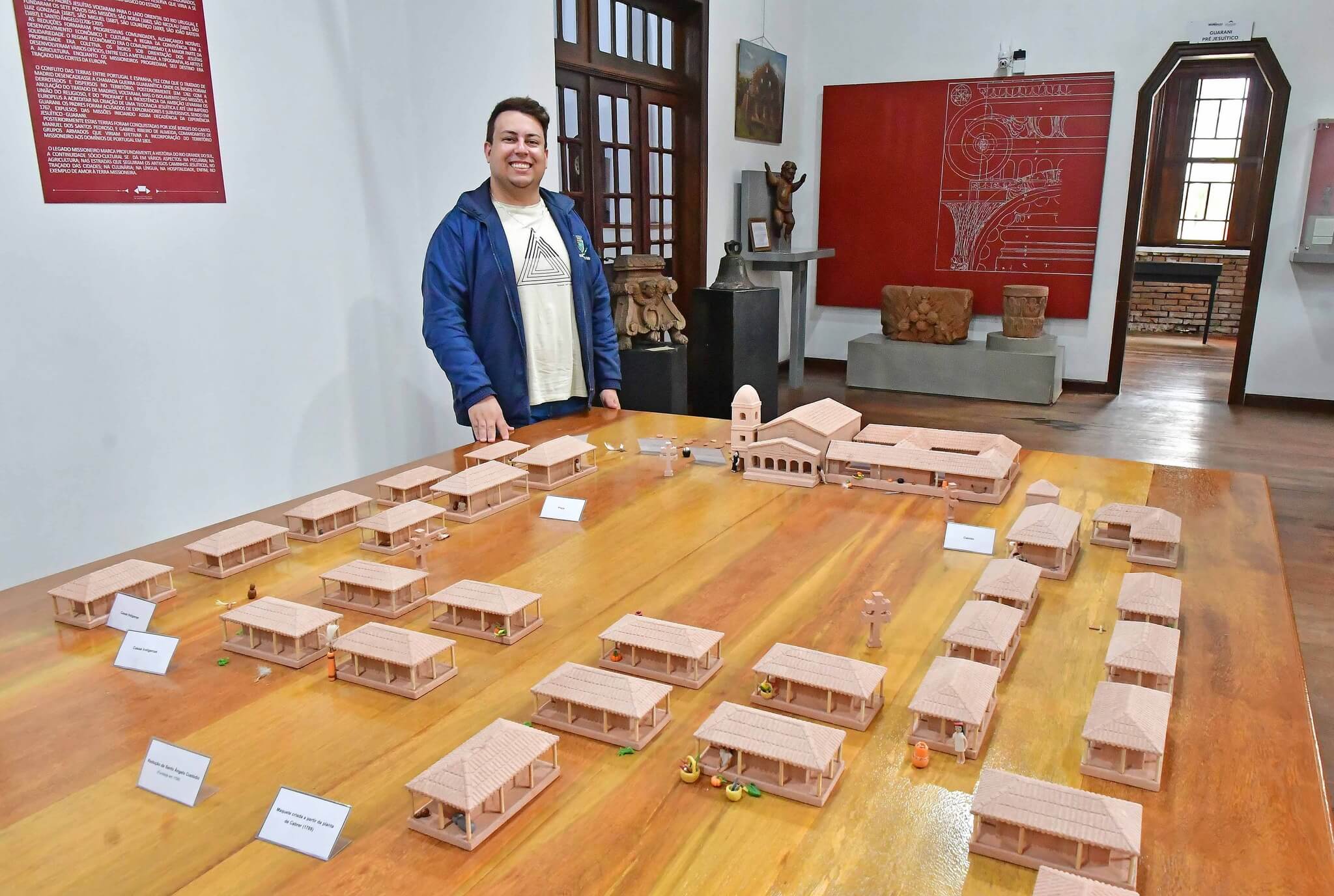 Outra novidade no Museu José Olavo Machado é a exposição permanente de uma nova maquete da Redução de Santo Ângelo Custódio, obra do artista missioneiro Diri, de São Nicolau, construída em pedra grês e madeira, seguindo com fidelidade o Plano de Cabrer. Douglas explica que José Maria Cabrer era o demarcador oficial e foi enviado por Portugal e Espanha para demarcar o território das reduções.