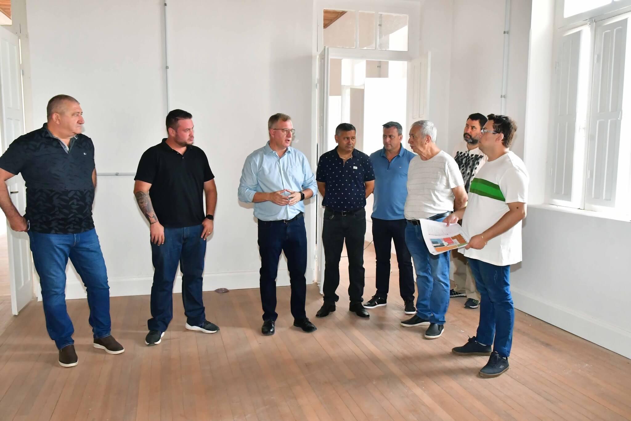 Acompanharam a visita, os membros da equipe do setor de Cultura do Município; o presidente da Câmara Municipal, Maurício Loureiro; secretário municipal de Desenvolvimento Econômico, Turismo e Inovação, João Baptista Santos da Silva e os vereadores Márcio Antunes; Nivaldo Langer de Moura, o Nêne; Carlos Gonçalves e Pedro Waskiewicz.