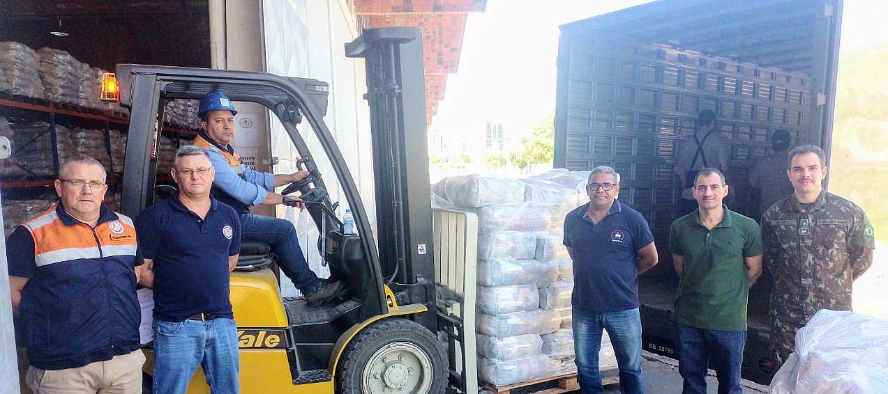 Ele ressalta que o trabalho de recebimento das cestas básicas contou com o apoio do Exército Brasileiro para o transporte dos produtos da central de distribuição da Defesa Civil do Estado até a sede da Secretaria Municipal de Desenvolvimento Social e Cidadania. “Agradecimento especial ao comandante do Depósito de Subsistência, tenente-coronel Carlos Eron Souza e do comandante do B Com, tenente-coronel Plácido Travassos, pelo auxílio fundamental que foi prestado”, destaca o diretor.
