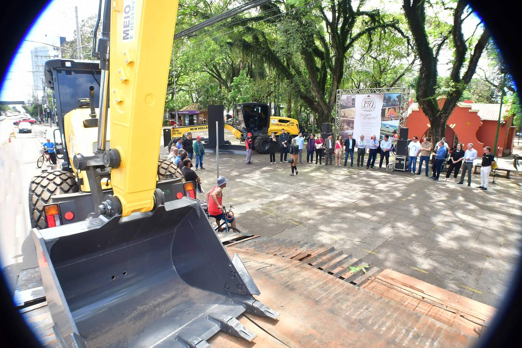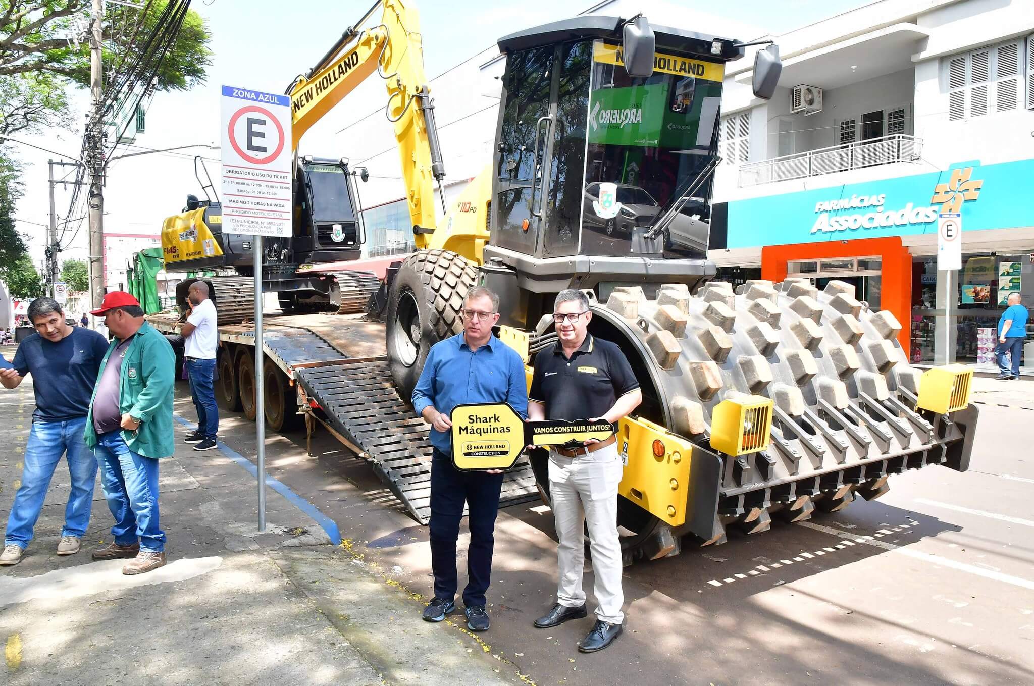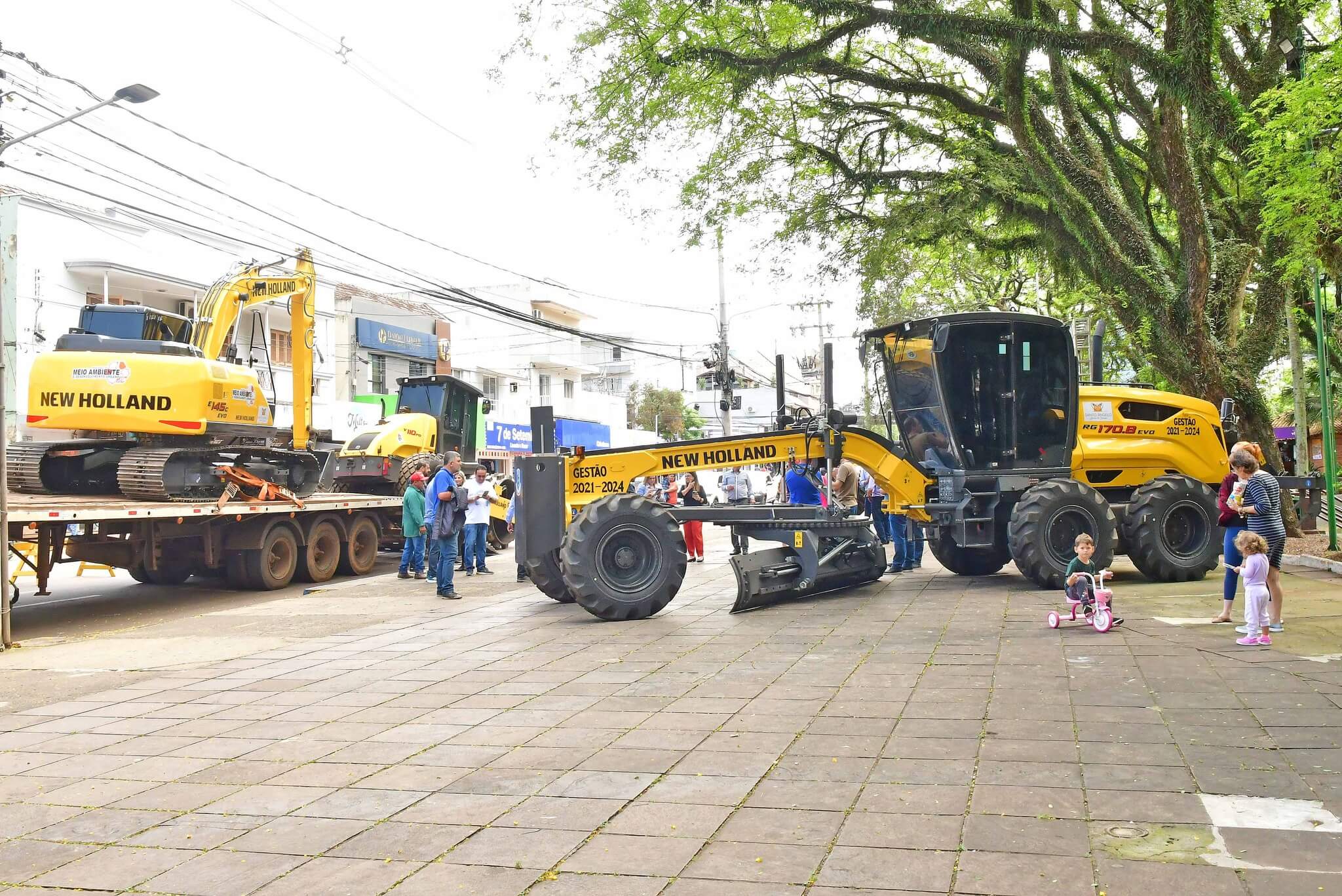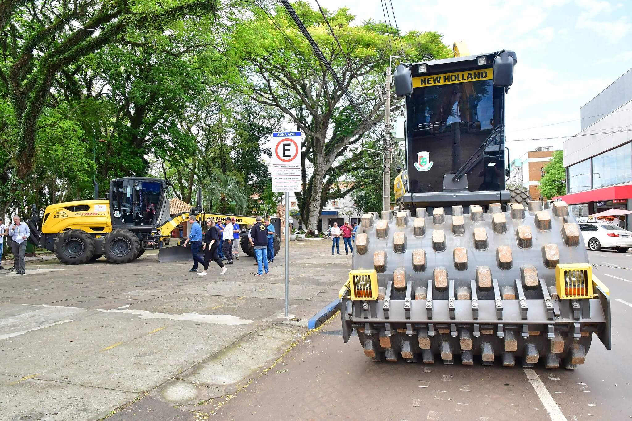 A solenidade de repasse dos maquinários foi realizado na manhã desta sexta-feira, 27, na Praça Leônidas Ribas, a Praça do Brique, e também contou com a presença da primeira-dama Juliana Barbosa; dos secretários municipais João Baptista Santos da Silva (Desenvolvimento Econômico, Turismo e Inovação), Luís Alberto Voese (Gestão de Finanças e presidente da Fenamilho Internacional) e Nader Hassan Awad (Cultura e Esporte); do presidente da Câmara de Vereadores, Carlos Alberto Gonçalves; Pedro Grass, representando o deputado estadual Eduardo Loureiro; vereadores Rodrigo Flores, Simone Lunkes, Vando Ribeiro de Souza, Felippe Terra Grass, Lúcia Lima, Maurício Loureiro e João Cardoso; Laurindo Nikititz, presidente do Sindicato Rural e do Fundestradas; Diomar Formenton, presidente da 11ª FEAAGRI Missões; Oswaldino Lucca, representando o Sindicato dos Trabalhadores Rurais; Sandy Couto, Rainha do Sesquicentenário de Santo Ângelo; Antônio Cardoso, Tassiana Ribeiro, Adilson Almeida e Maykel Mello, diretores de departamentos; o representante da New Holland, Celso Schäffer e servidores do município vinculados às pastas contempladas.
