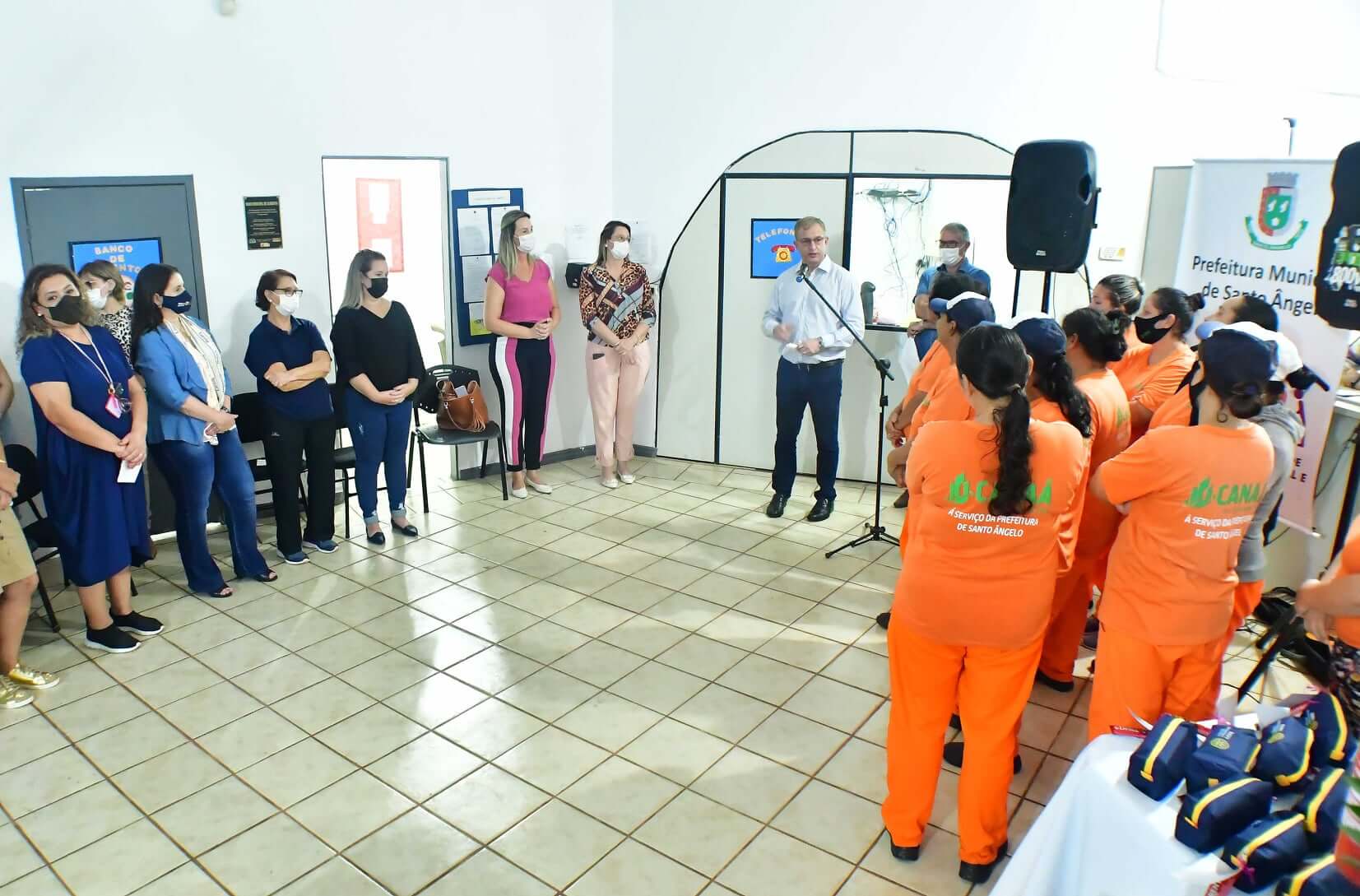 Dentro das comemorações do Dia Internacional da Mulher, transcorrido na terça-feira, 8, uma homenagem especial para as trabalhadoras da limpeza urbana de Santo Ângelo foi realizada na manhã desta quinta-feira, 10, na Secretaria Municipal de Desenvolvimento Social e Cidadania. As garis foram recepcionadas com café da manhã e receberam kits de presente doados pelo Rotary Clube Santo Ângelo Centro Norte.