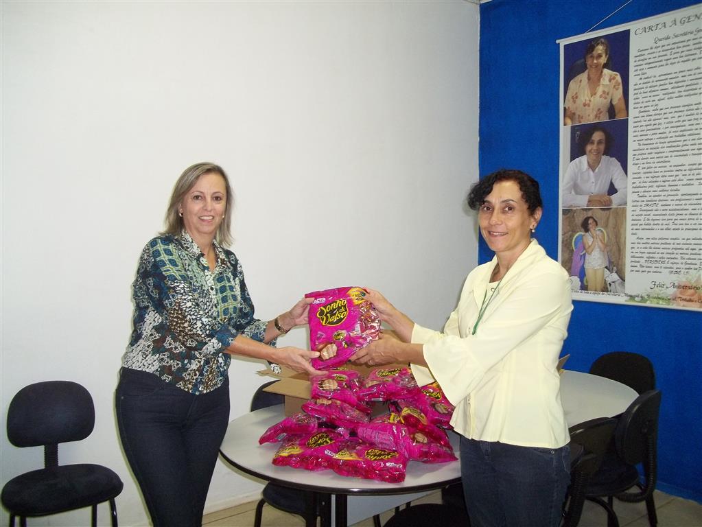 Nesta semana, a tesoureira do Rotary Clube Santo Ângelo Centro-Norte, Celi Mousquer entregou à secretária de Assistência Social, Trabalho e Cidadania, Genelucia Dalpiaz, 15 quilos de bombons. A doação foi feita para a Campanha Páscoa Mais Doce, realizada paralelamente ao Encontro das Artes.
