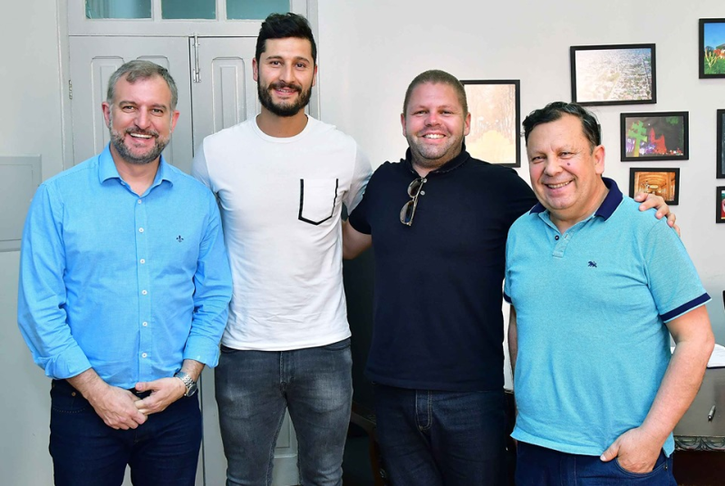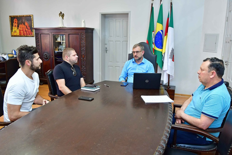 Nesta sexta-feira, 30, o prefeito Jacques Barbosa, e o secretário de Turismo, Esporte, Lazer e Juventude, Vando Ribeiro de Souza, estiveram reunidos no Gabinete do Executivo, com o coordenador técnico do Grand Slam Missões de Vôlei, Matheus Bewanger Vier, e Ivan Walter, atleta bicampeão da Superliga Brasileira com as equipes da Unisul e Cimed Florianópolis.