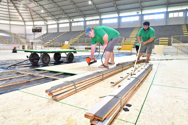 O Ginásio Municipal Marcelo Mioso está recebendo melhorias. As obras estão sendo realizadas pela Edificadora Catarinense e as melhorias envolvem o piso da quadra esportiva e a iluminação e integram o programa do Governo Municipal de revitalização dos espaços esportivos de Santo Ângelo.