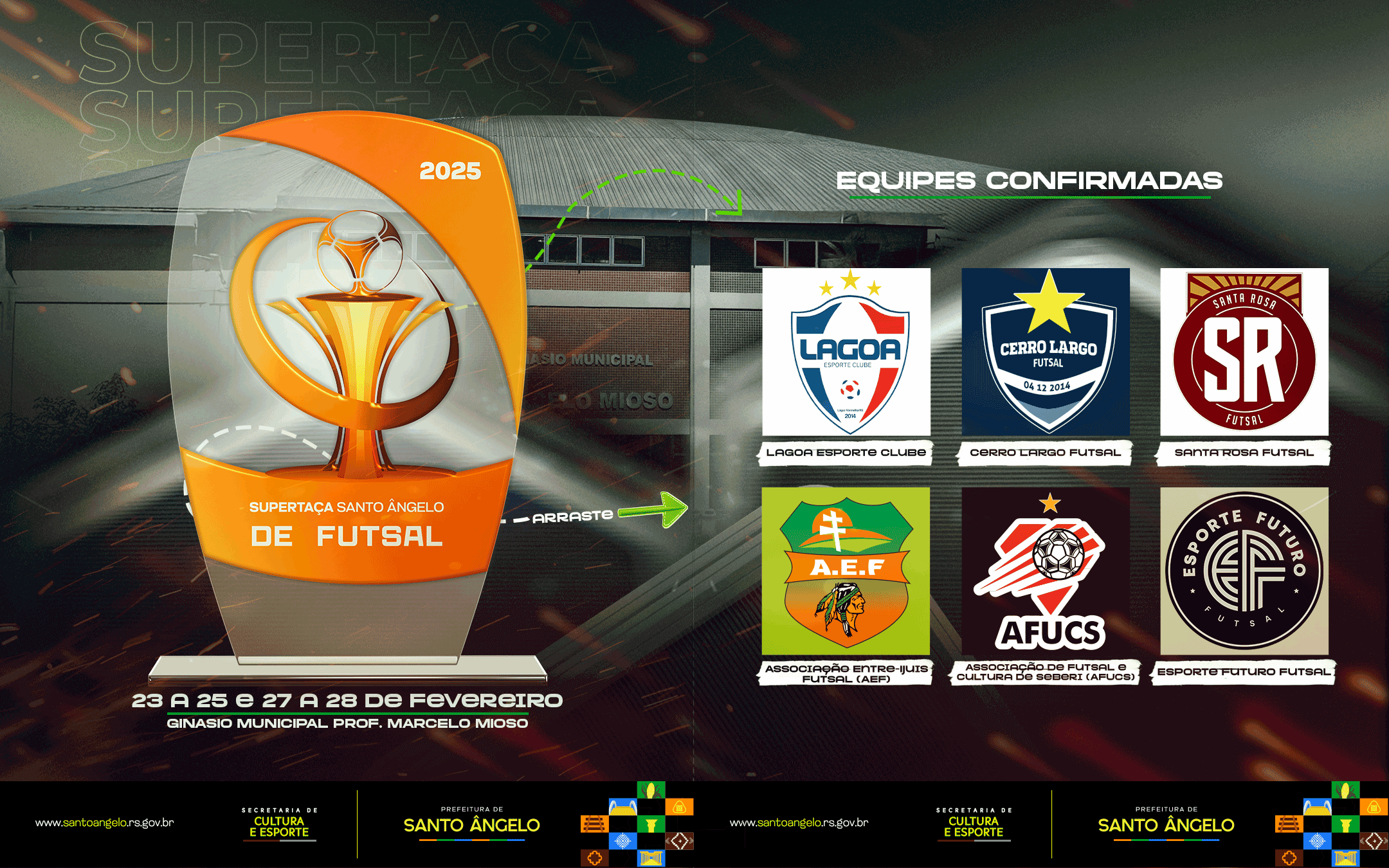 A primeira edição da Supertaça Santo Ângelo de Futsal está prestes a trazer grandes clubes de futsal do Rio Grande do Sul e Paraná para o Ginásio Marcelo Mioso. Organizado pela Associação Esportiva Santo Ângelo Futsal (AESA) com apoio da Prefeitura Municipal, por meio da Secretaria de Cultura e Esporte, o evento acontecerá entre os dias 23 e 28 de fevereiro.
