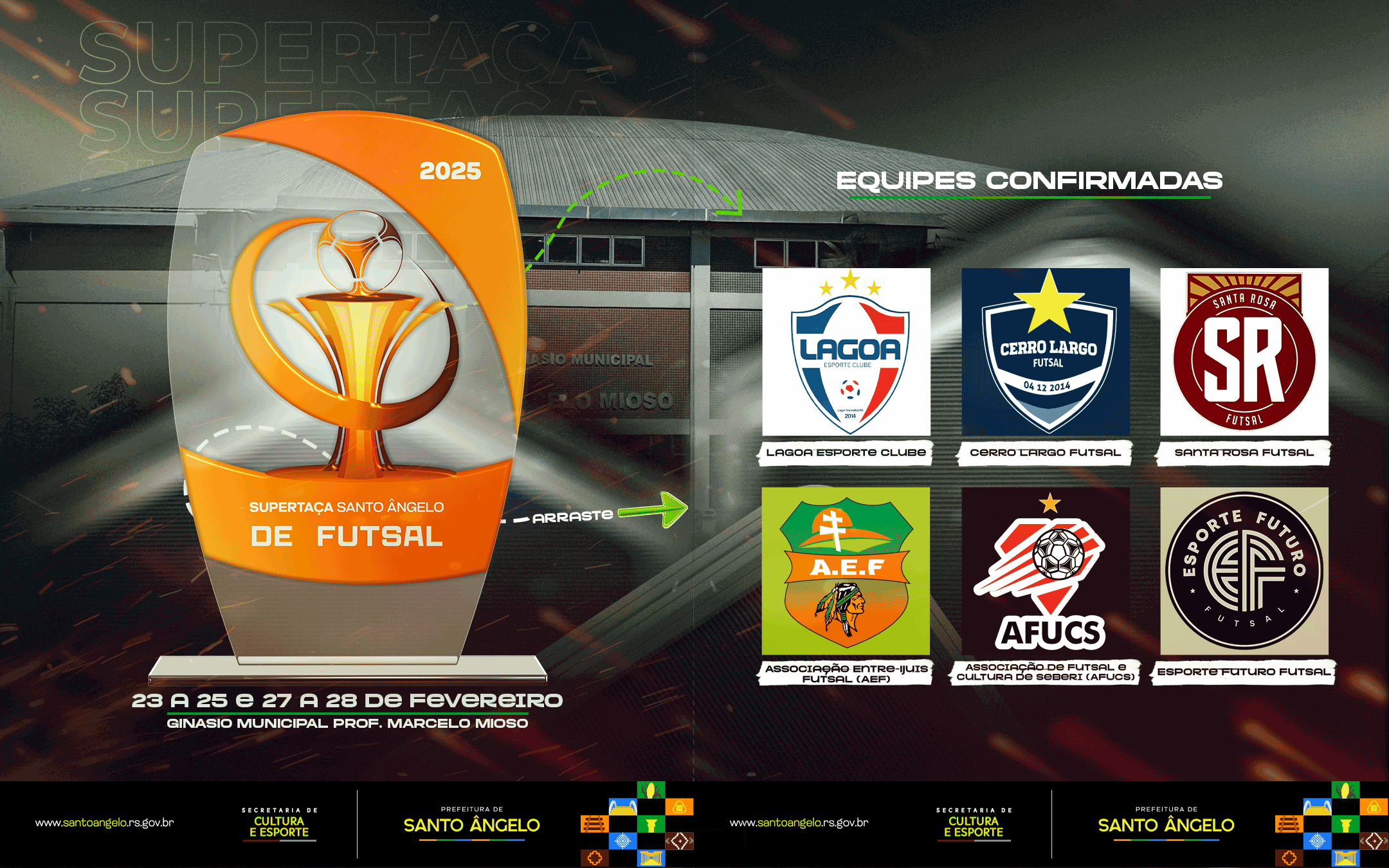 A cidade de Santo Ângelo se prepara para viver grandes emoções no futsal com a realização da primeira edição da Supertaça Santo Ângelo de Futsal. O evento é promovido pela Associação Esportiva Santo Ângelo Futsal (AESA) com apoio da Prefeitura Municipal, por meio da Secretaria de Cultura e Esporte.