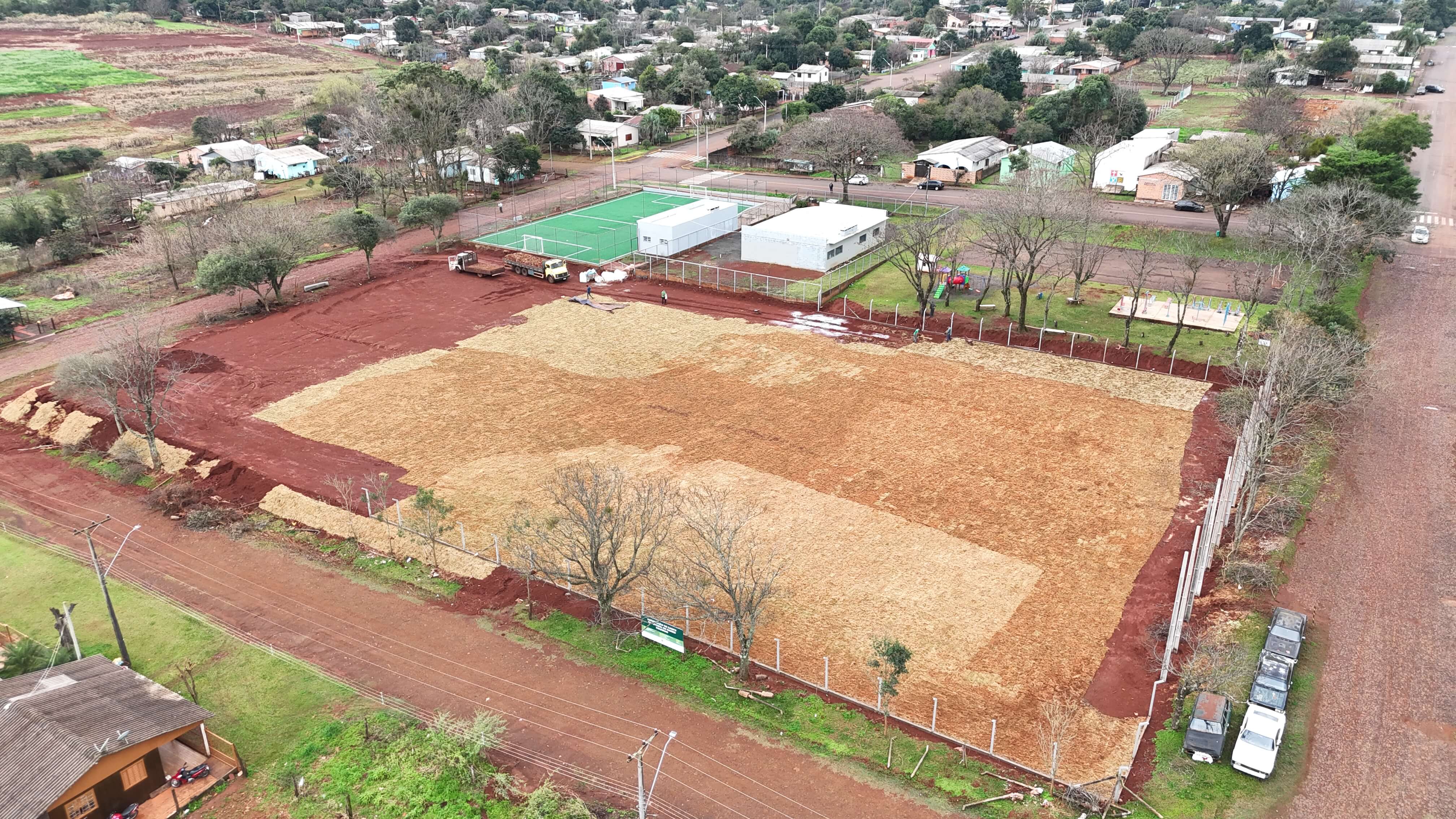 A Prefeitura de Santo Ângelo, por meio da Secretaria Municipal de Cultura e Esporte, está construindo um novo campo de futebol 11 no bairro Indubras. A obra contempla serviços de terraplanagem, plantio de grama e cercamento do espaço esportivo, executados pela empresa J.M. de Bittencourt, vencedora da licitação.